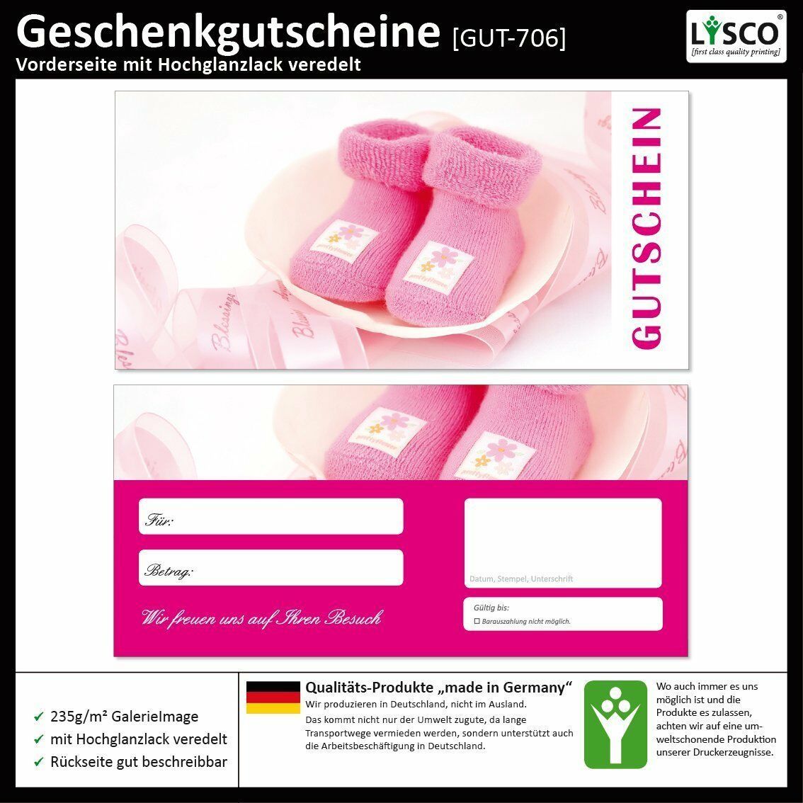 50 Geschenkgutscheine (Schuhe-706) Gutscheine Handel rosa Babysachen Shopping
