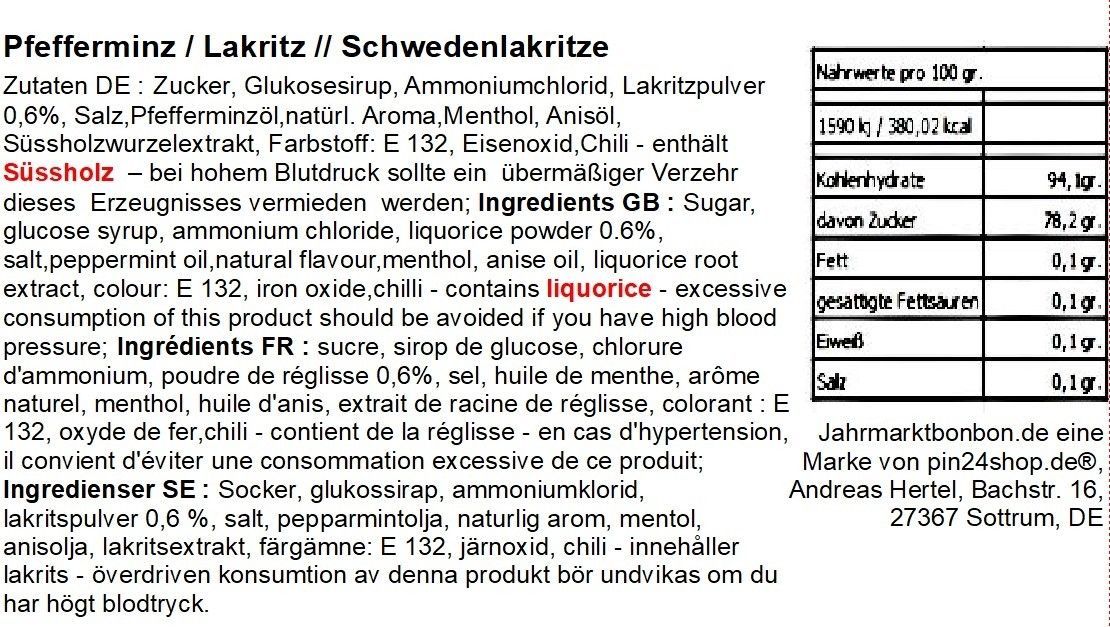 50 gr. Schwedenlakritze - Pfefferminz Lakritz von Jahrmarktbonbon