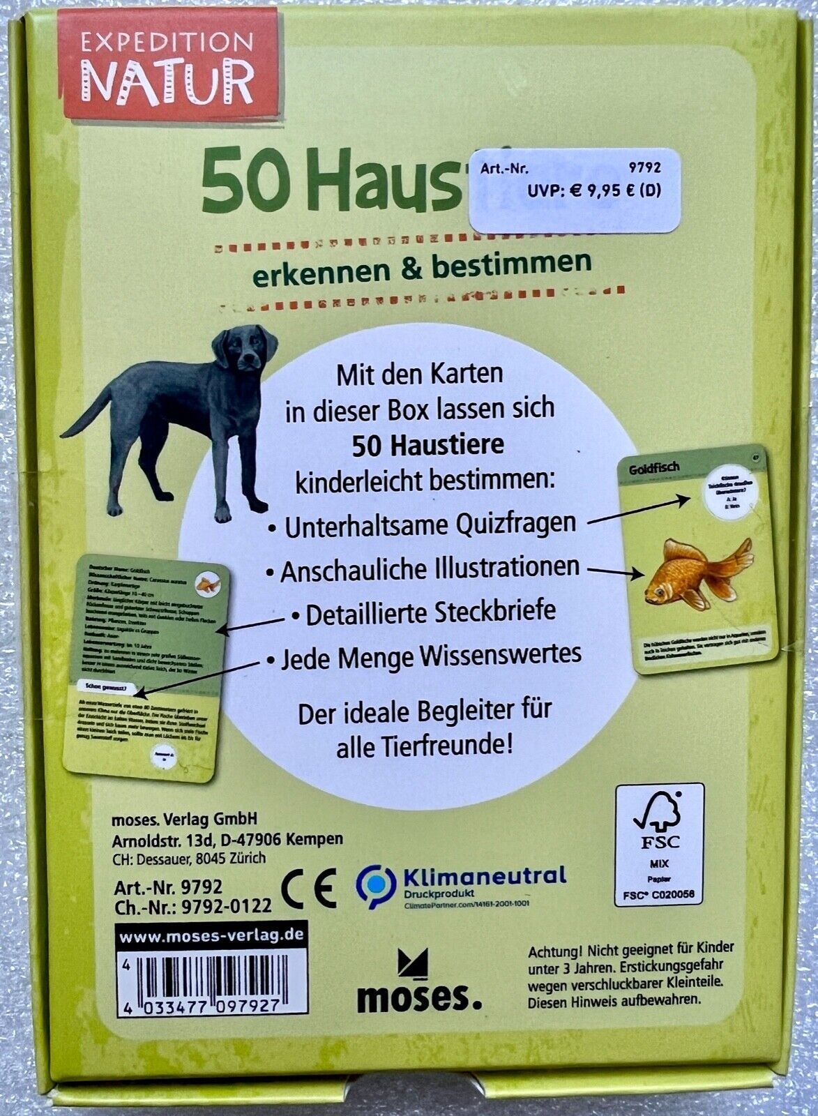 50 Haustiere Expedition Natur Moses Lernspiel Quizfragen Kartenspiel FSC 9792