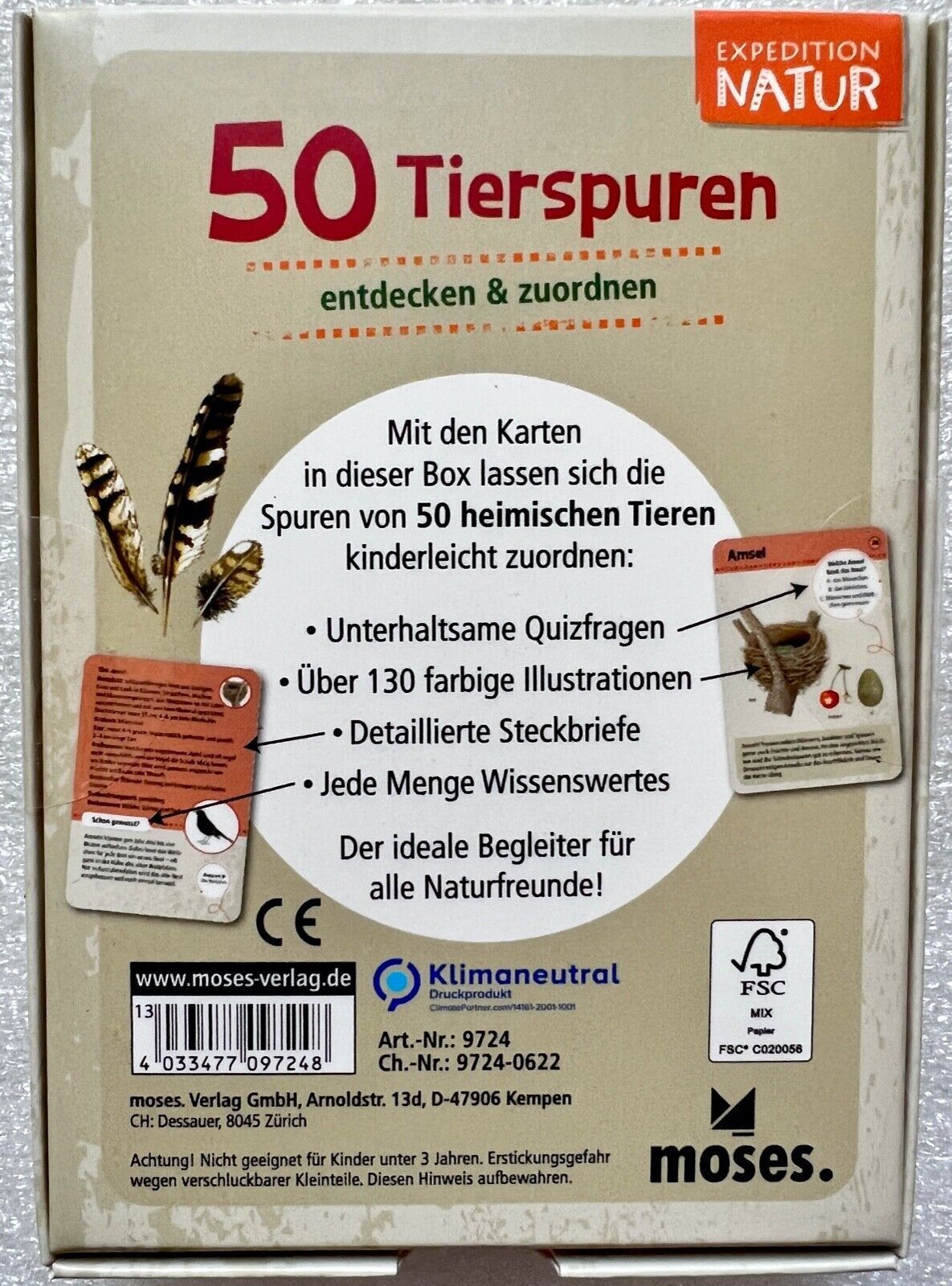 50 heimische Tierspuren Expedition Natur Moses Lernspiel Kartenspiel Quizspiel