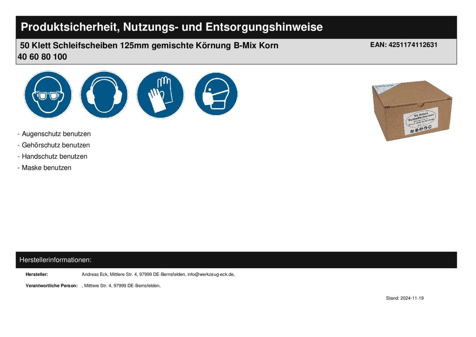 50 Klett Schleifscheiben 125mm gemischte Körnung Mix Korn 40 60 80 100 Eckra