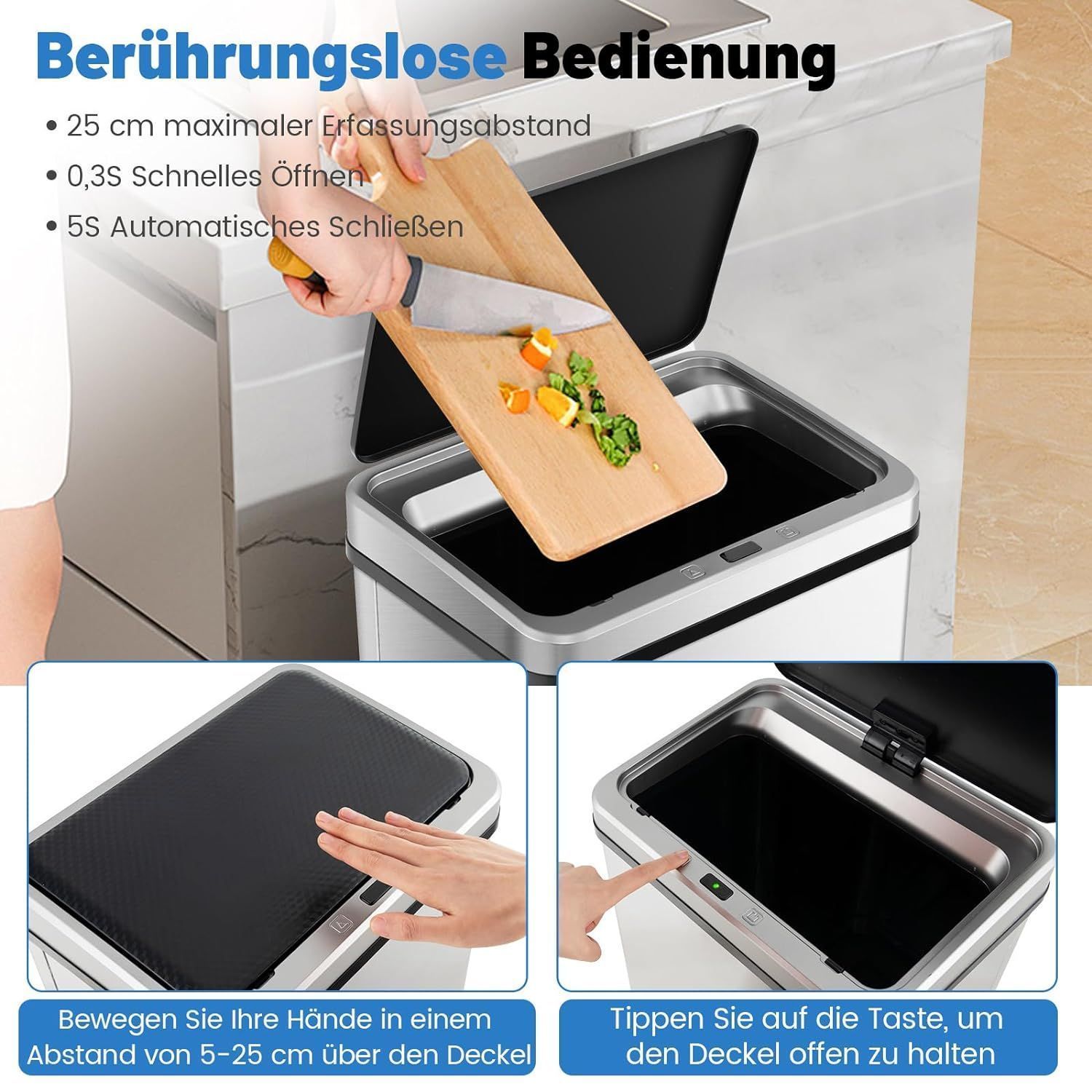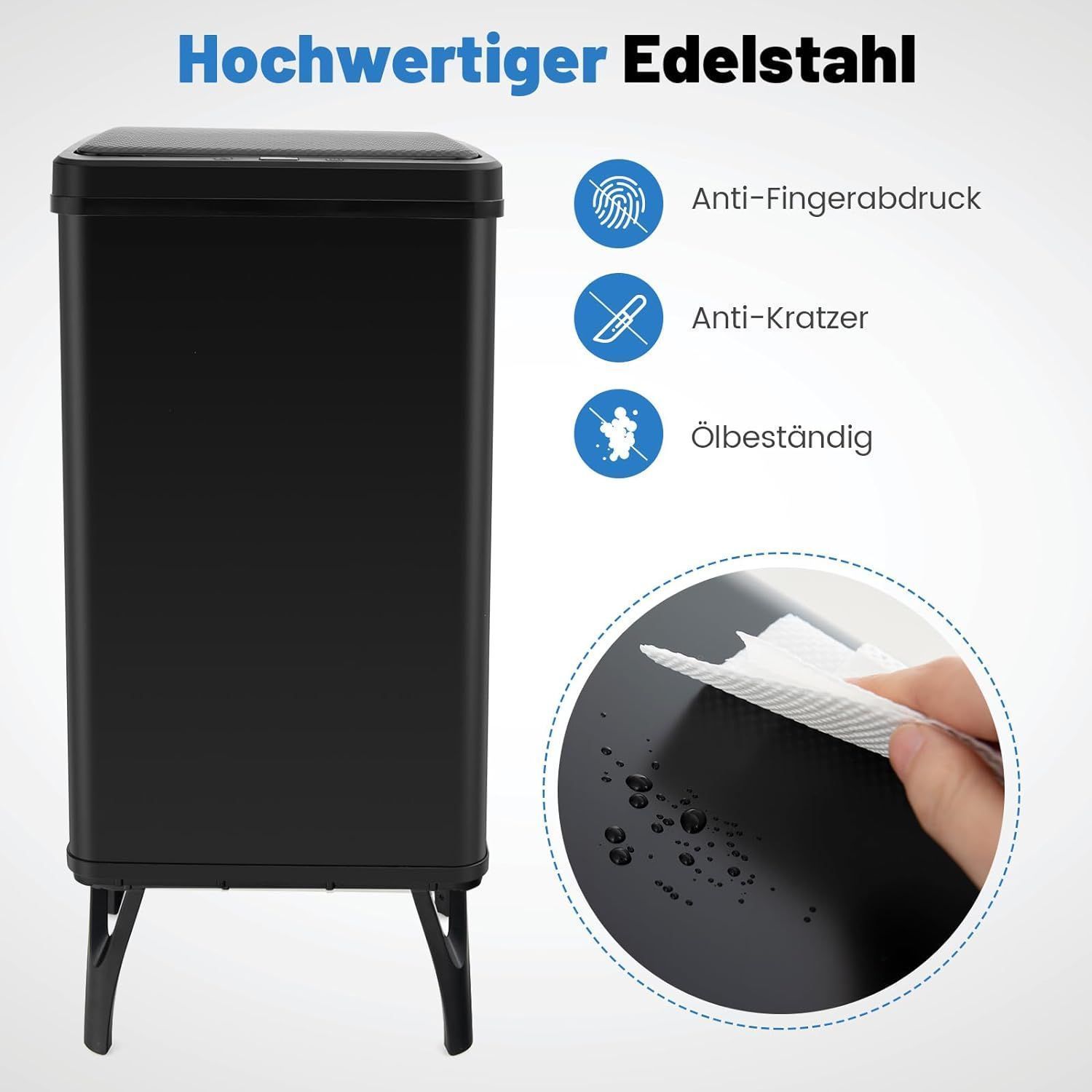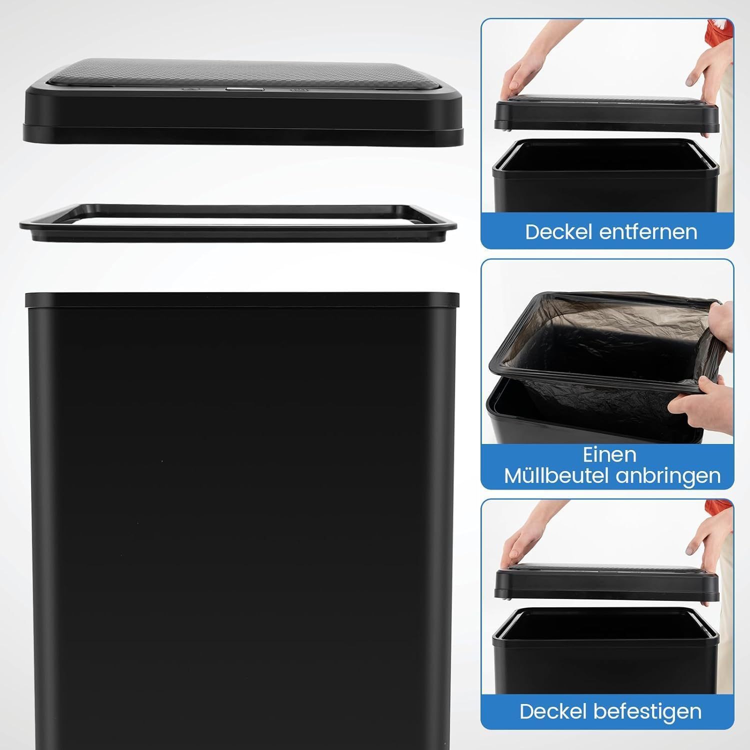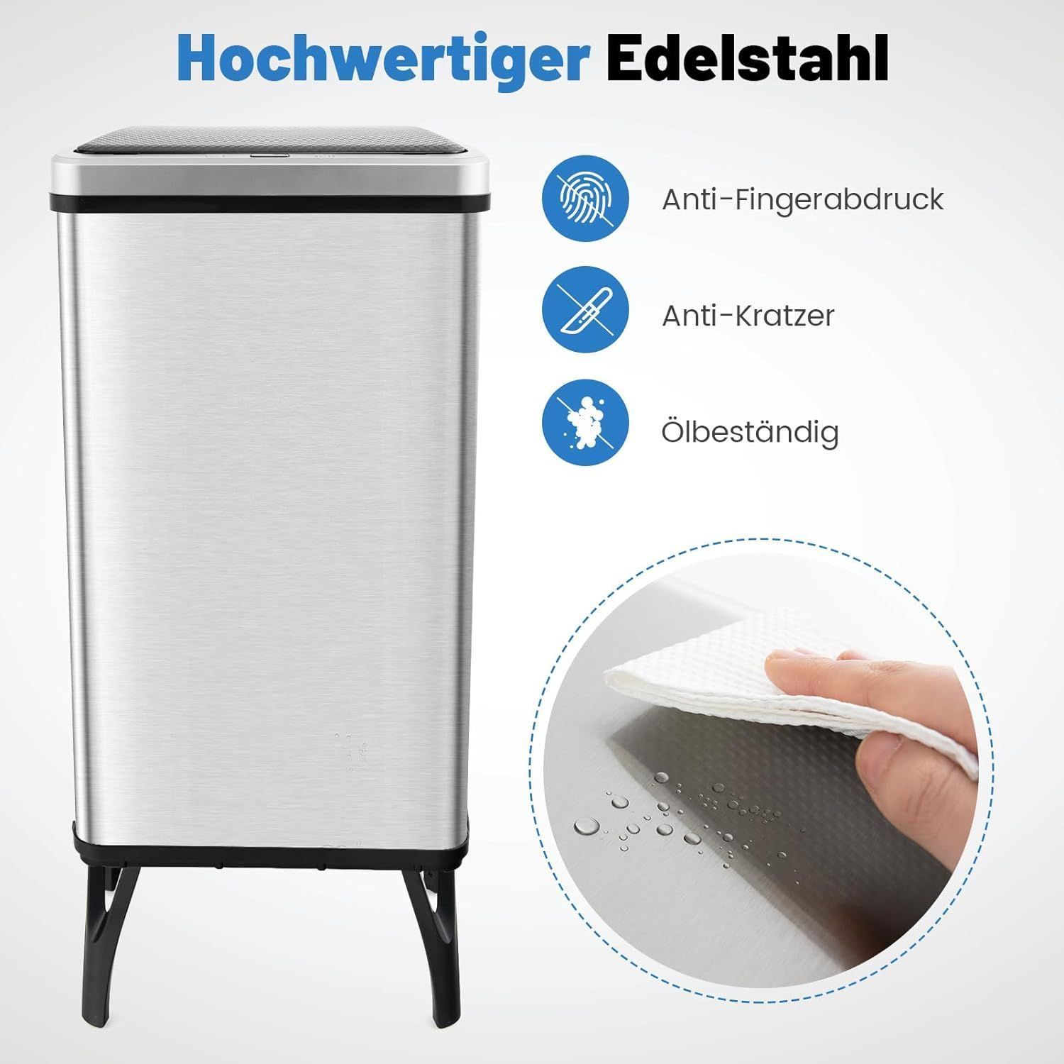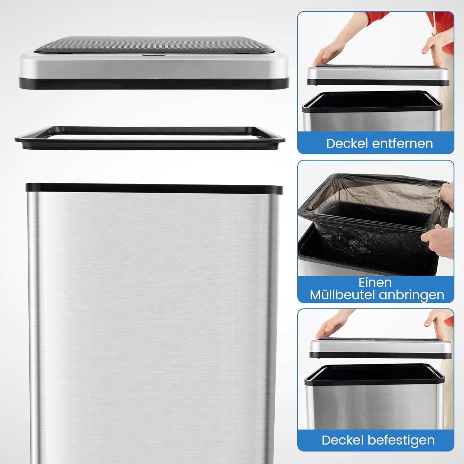 50 L Mülleimer Edelstahl mit Sensor, Abfalleimer mit automatischer Deckel