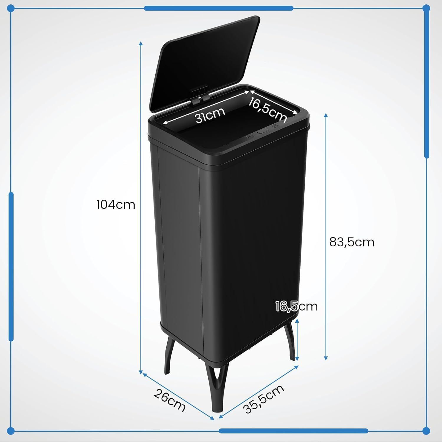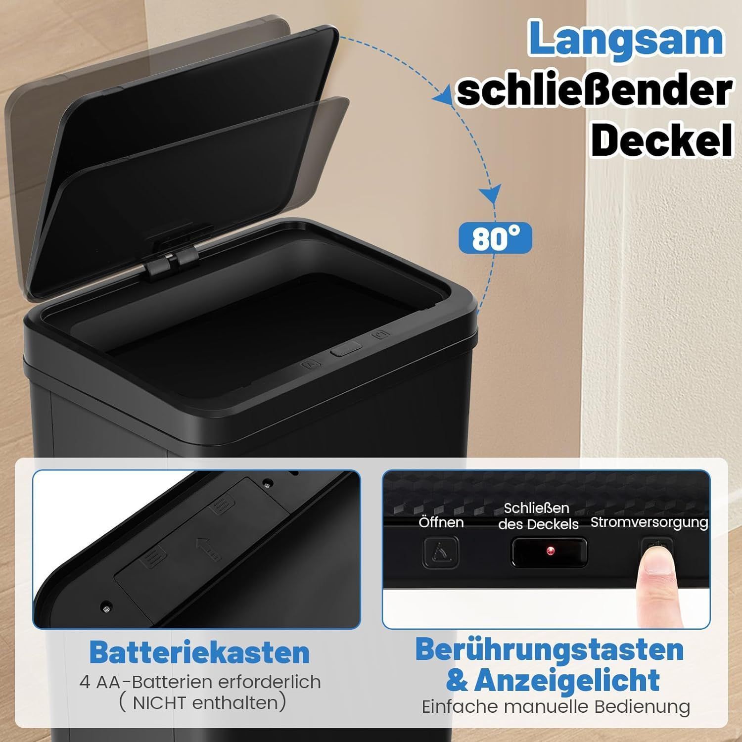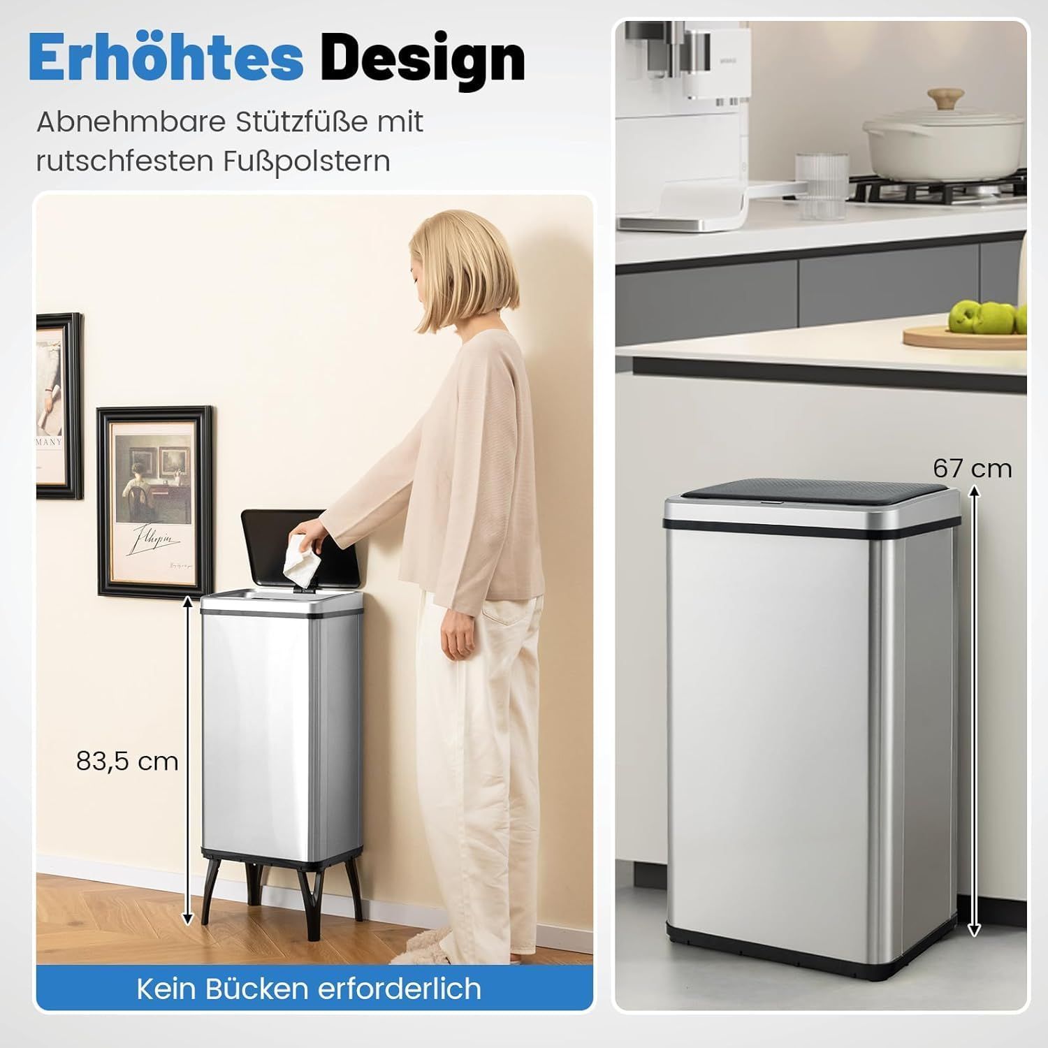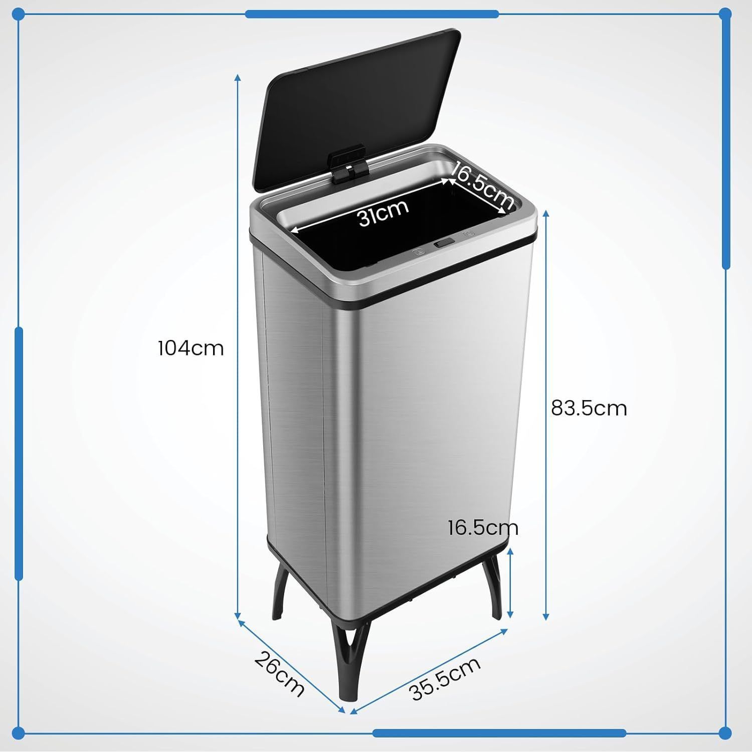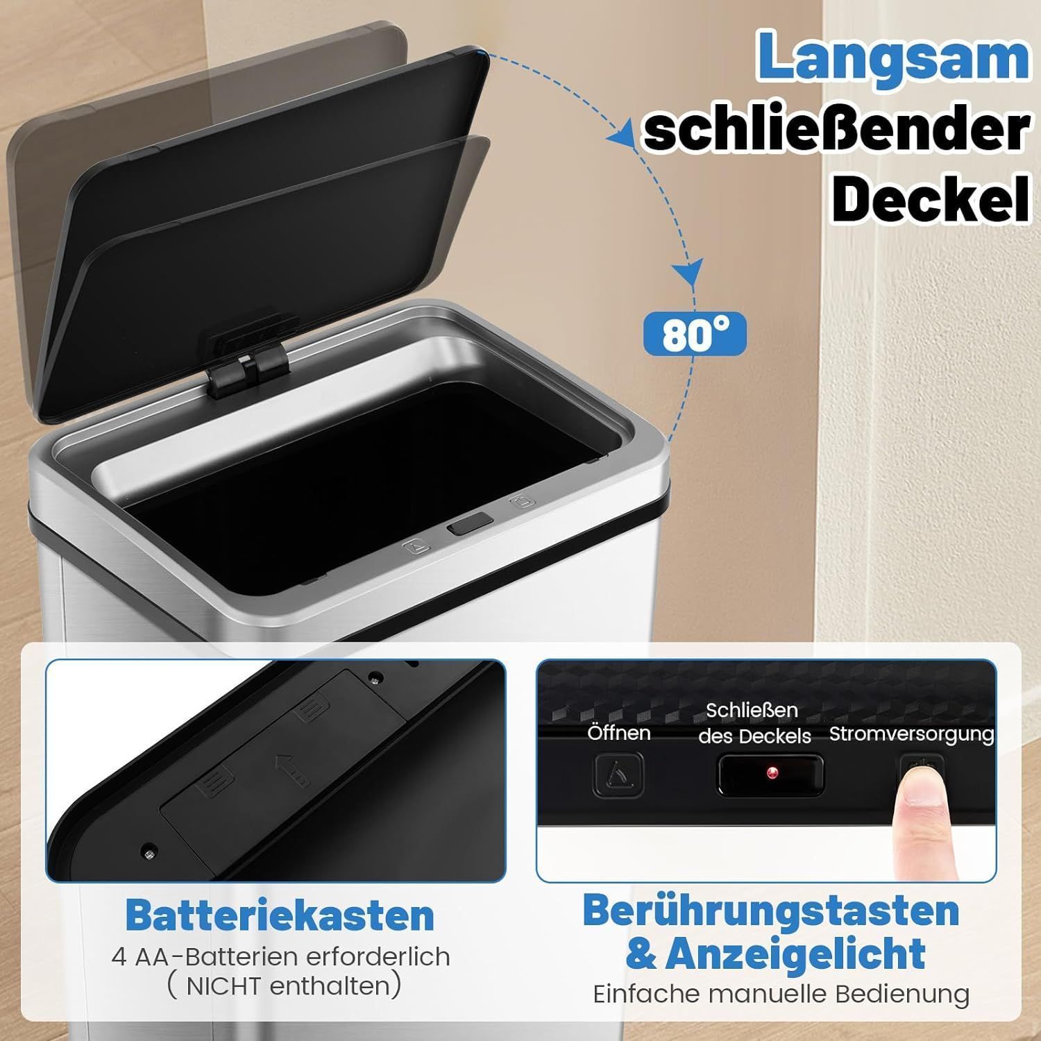 50 L Mülleimer Edelstahl mit Sensor, Abfalleimer mit automatischer Deckel