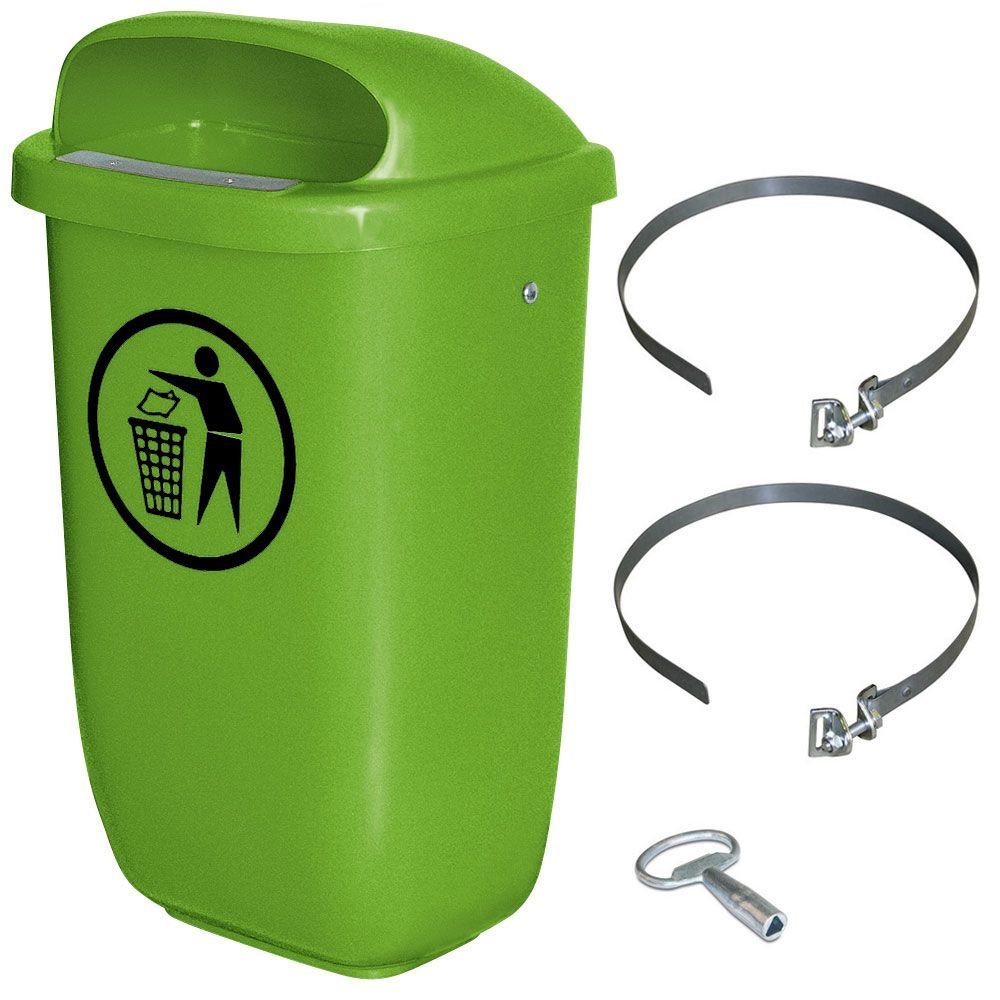 50 Liter Abfallbehälter grün im Komplettset mit Schellenband zur Pfahlbefestigung