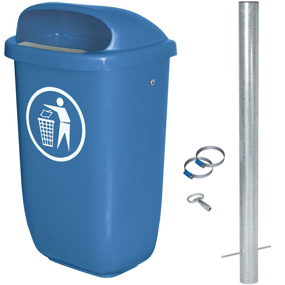 50 Liter Abfallbehälter im Komplettset mit verzinktem Rohrpfosten