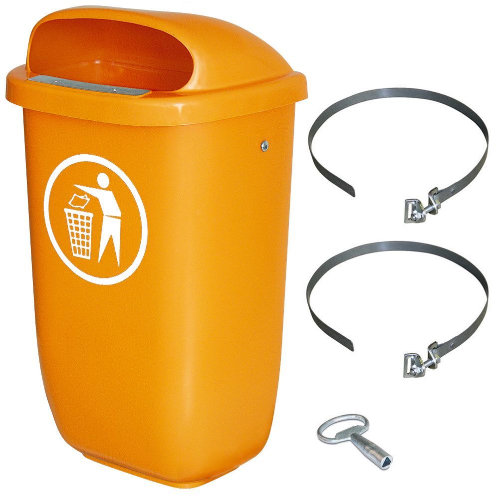 50 Liter Abfallbehälter orange im Komplettset mit Schellenband zur Pfahlbefestigung