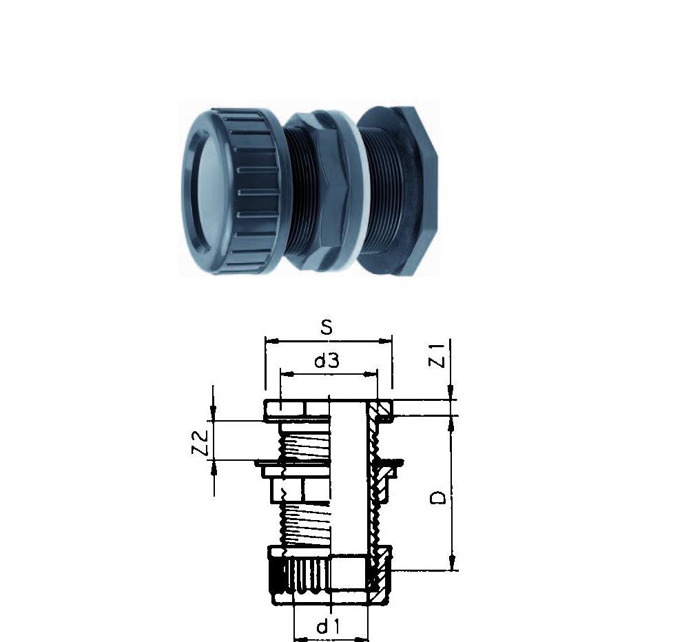 50 mm Tankdurchführung PVC für Tanks und Aquarien Klemm x AG