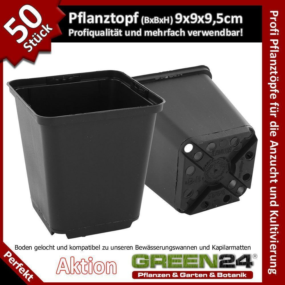 50 Pflanztöpfe 9x9x9,5cm GREEN24 Vierecktopf Profi Anzuchttopf Profiqualität