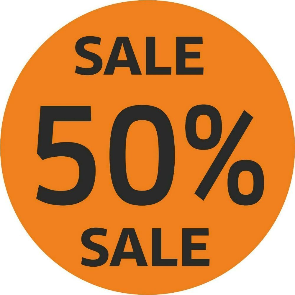 Aufkleber SALE 50% Eigenschaften: Farbe: orange mit schwarzem Text (andere Farben und Prozente finden Sie in unseren weiteren Angeboten) Material: Klebefolie rückstandslos entfernbar einfache Verklebung geeignet für alle glatten Fächen (Glas, Kunststoff, Holz, Acryl...) Versand innerhalb von 24 Std.