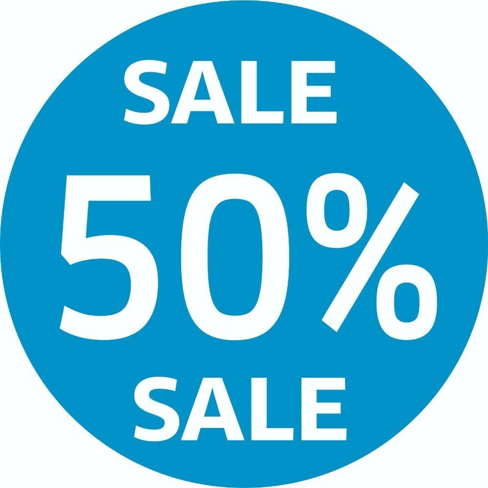 50% SALE Schaufenster Aufkleber Rabatt Ausverkauf Schlussverkauf SSV WSV % blau