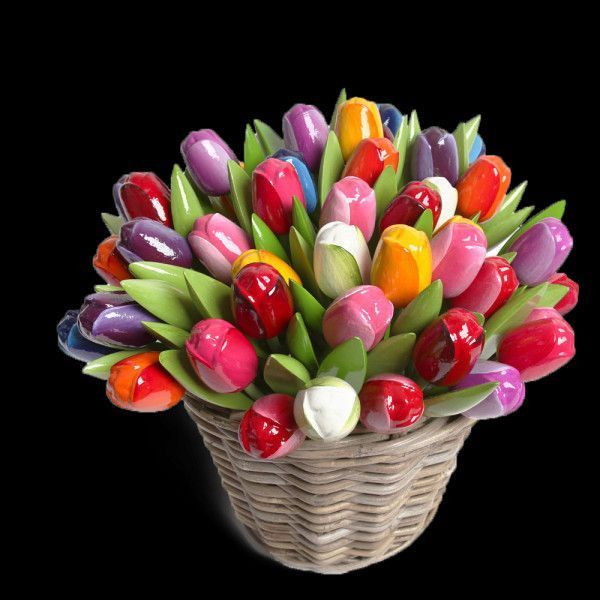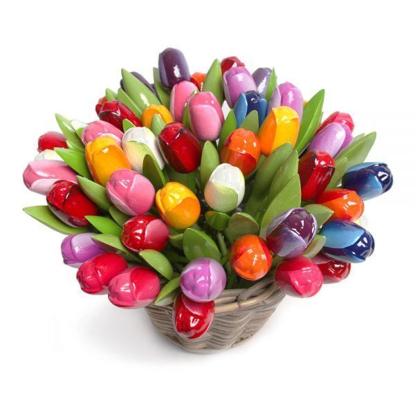 50 stück Holztulpen 34 cm lang gemischt im Korb Tulpen aus Holz handgefertigt Deko