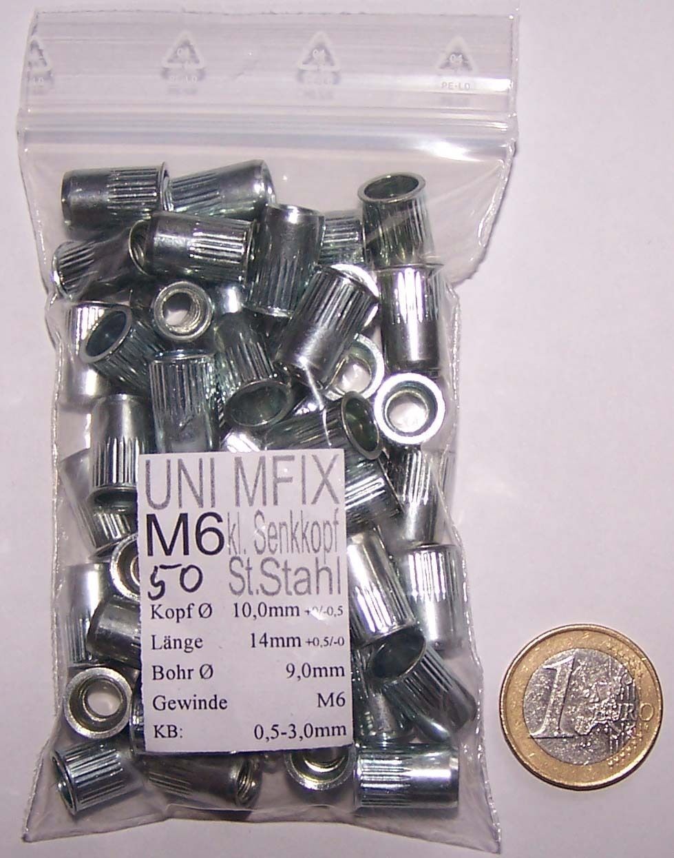 50 Stahl Nietmutter M6 kleiner Senkkopf gerändelt Blindnietmuttern Einnietmutter