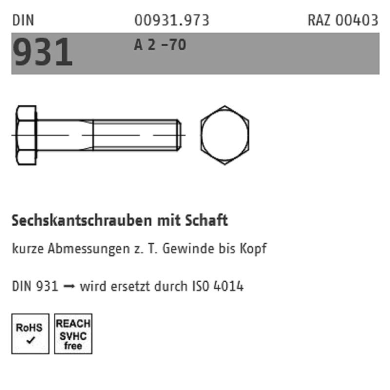 50 Stck Sechskantschraube Edelstahl A2 M8x50 mm Reyher