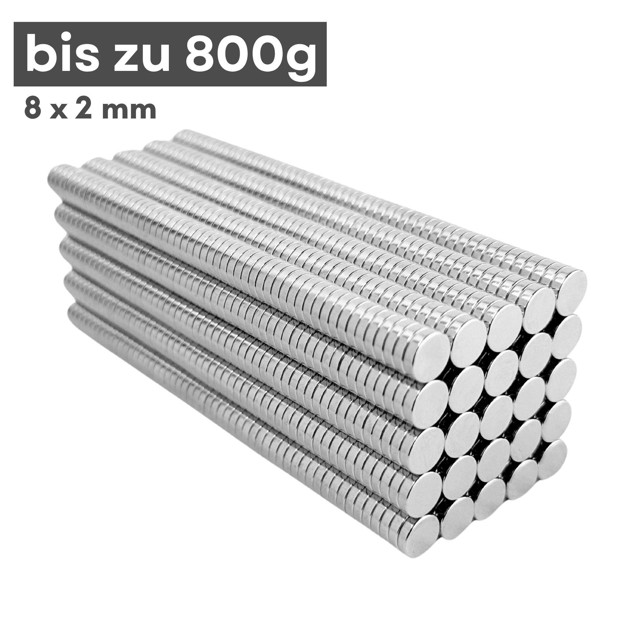 50 Stück Neodym Magnet Ø 8mm x 2mm - Starker Scheibenmagnet - N38 Supermagnet - Hohe