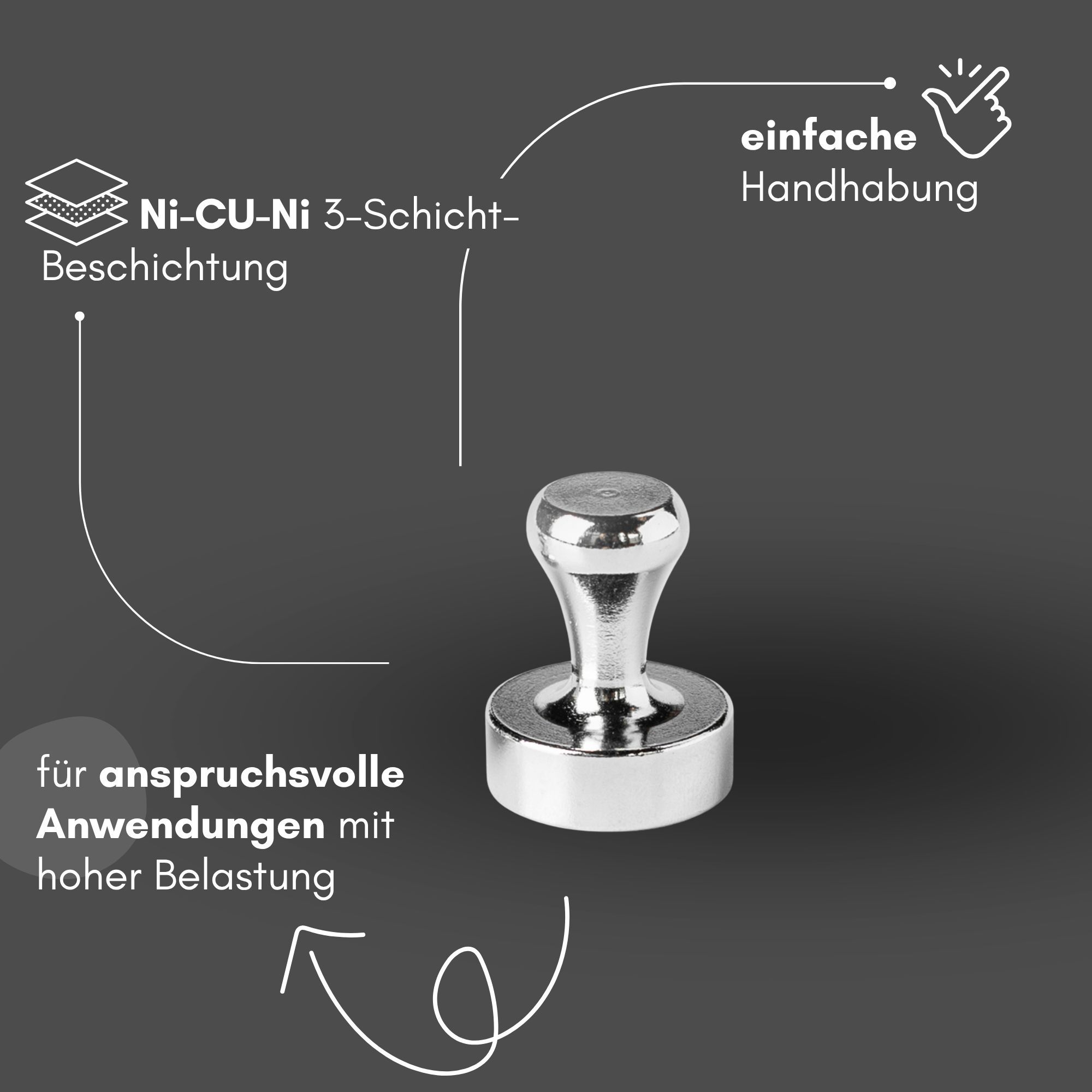 50 Stück Pinnwand Magnet Ø12 mm x H16 mm Neodym Magnete bis 5 KG Zugkraft Kegel Magne