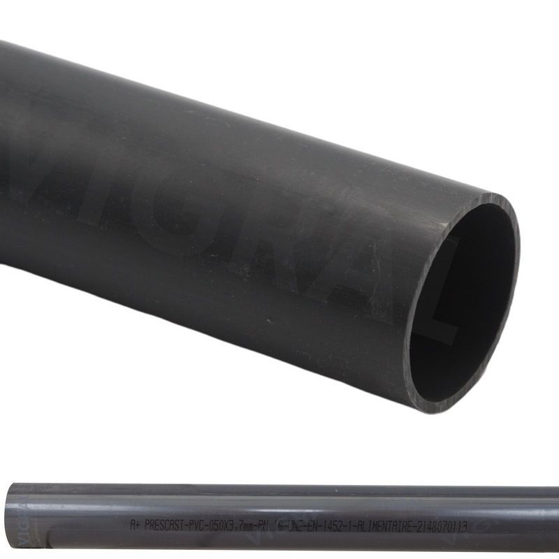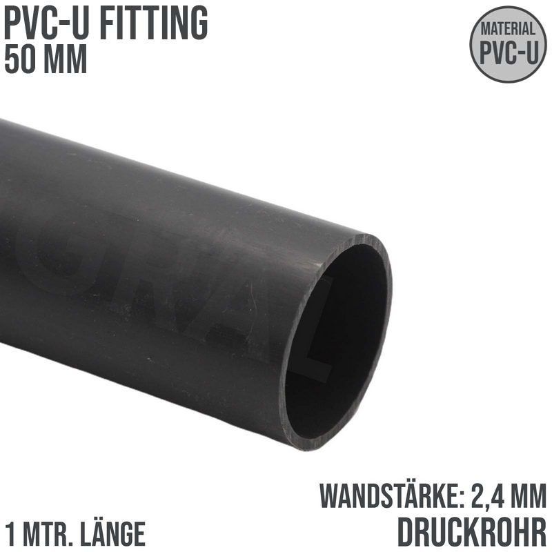 50 x 2,4 mm PVC Klebe Fitting Druck Kunststoff Rohr grau - 1 m Fixlänge 10 bar