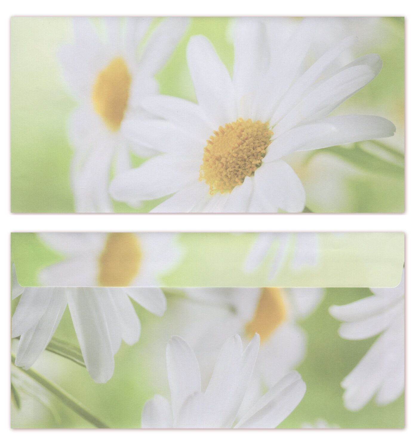 50 x Premium Briefumschläge DIN lang mit Motiv bedruckt, Blumen Margeriten
