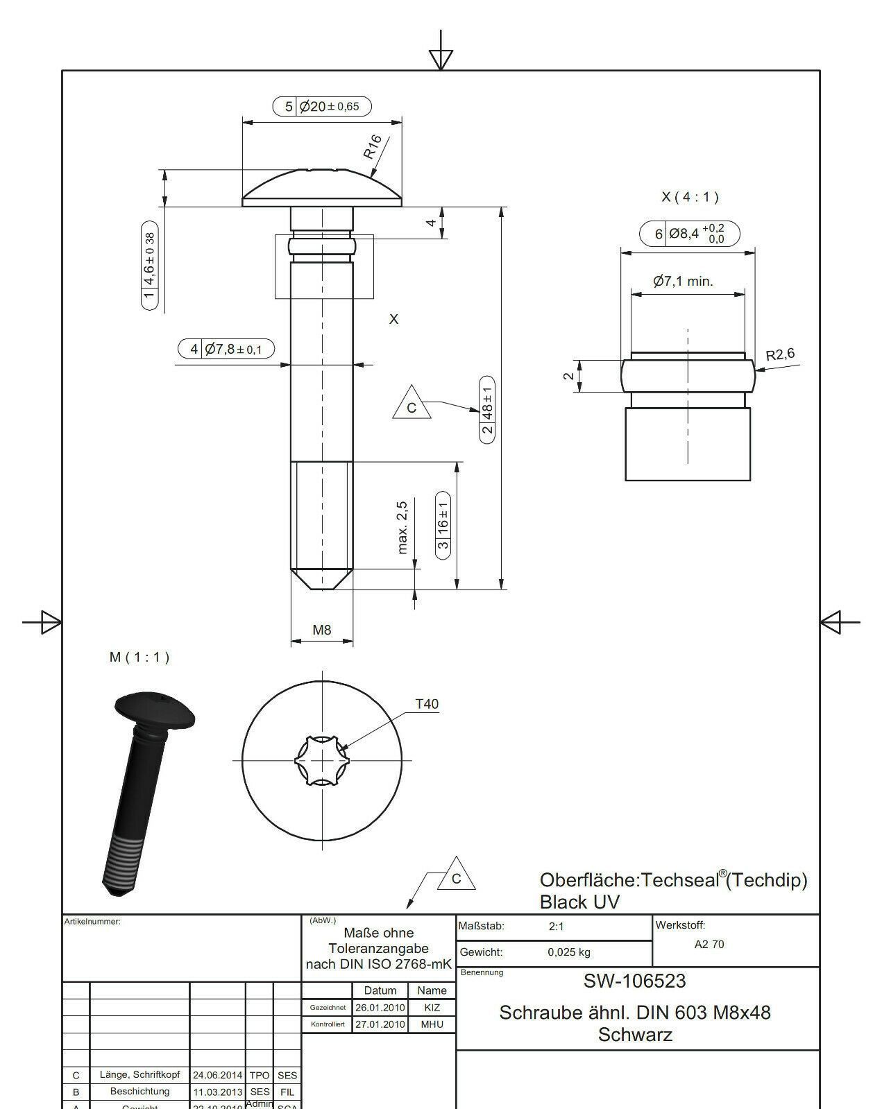 50 x Schlosschraube ä. DIN603 Edelstahl V2A TX40 Flansch M8 x 48 schwarz o. blank