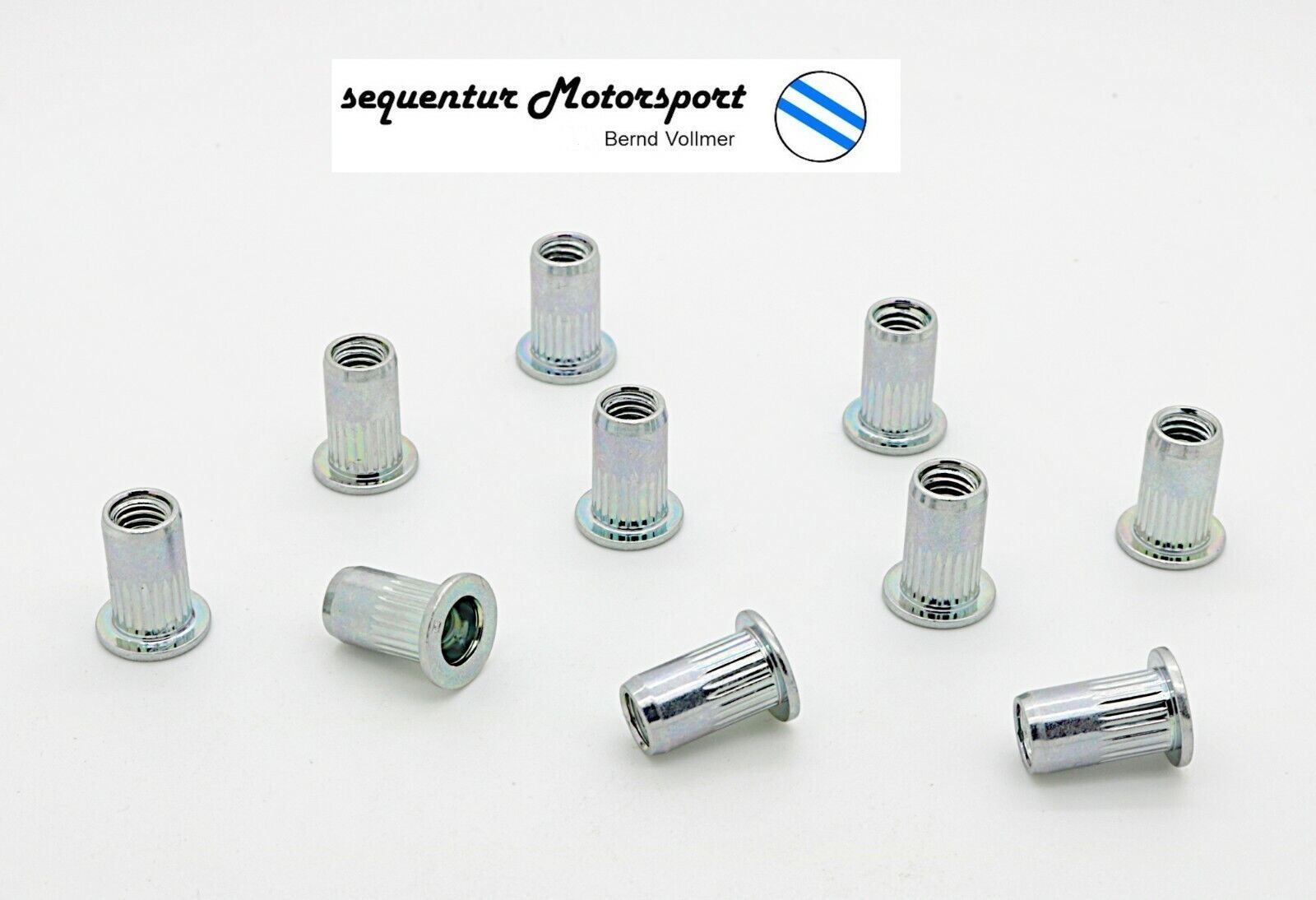 Ich biete Ihnen erstklassige Blindnietmuttern mit Flachkopf mit welchen belastbare Innengewinde an dünnwandigen Bauteilen geschaffen werden können. Um einen optimalen Korrosionsschutz zu gewährleisten, sind diese Blindnietmuttern vom Hersteller verzinkt und passiviert. Die Oberfläche besteht den Sal