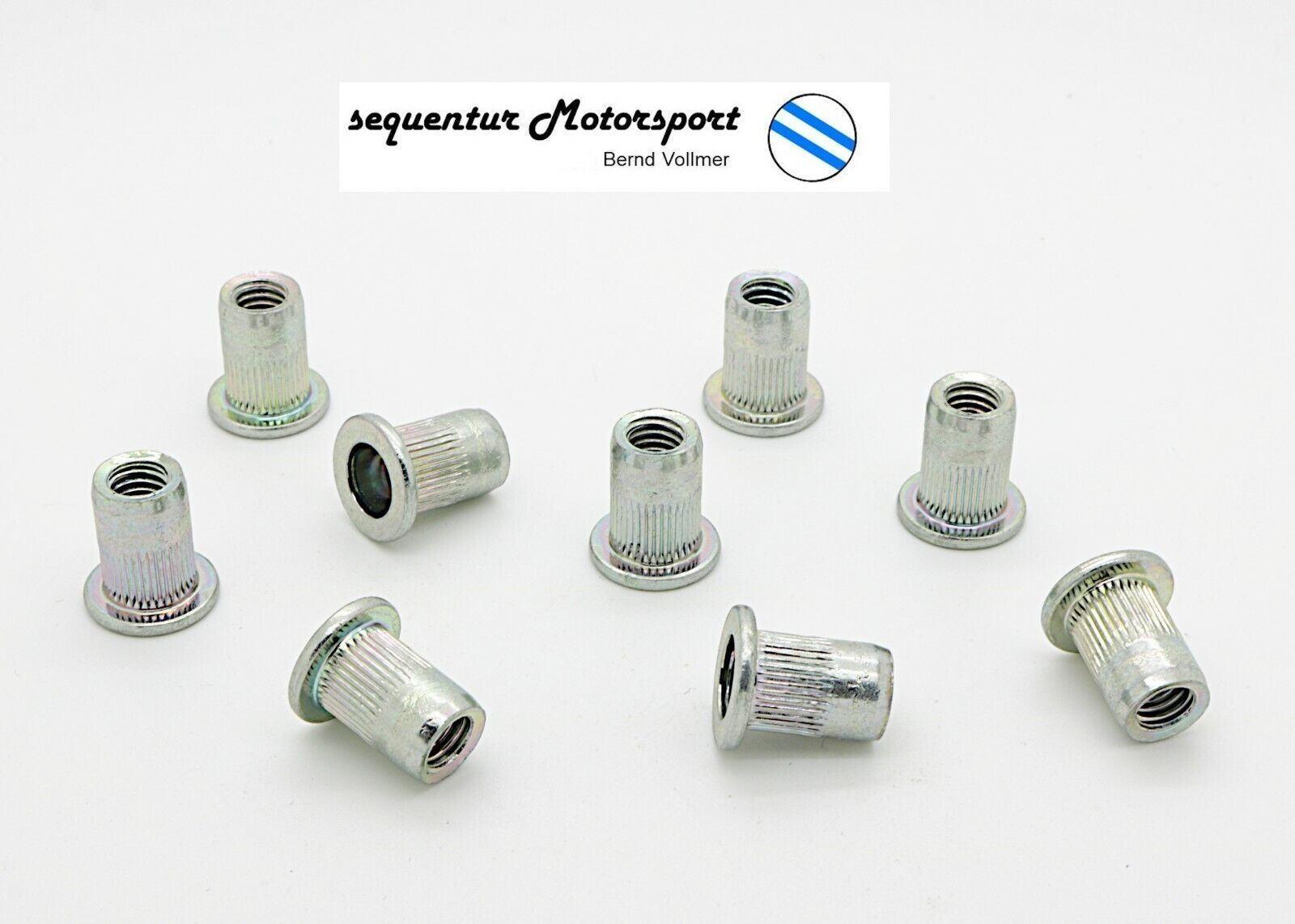 500 Stück Blindnietmutter Einziehmutter, Stahl, verzinkt, Flachkopf M 6