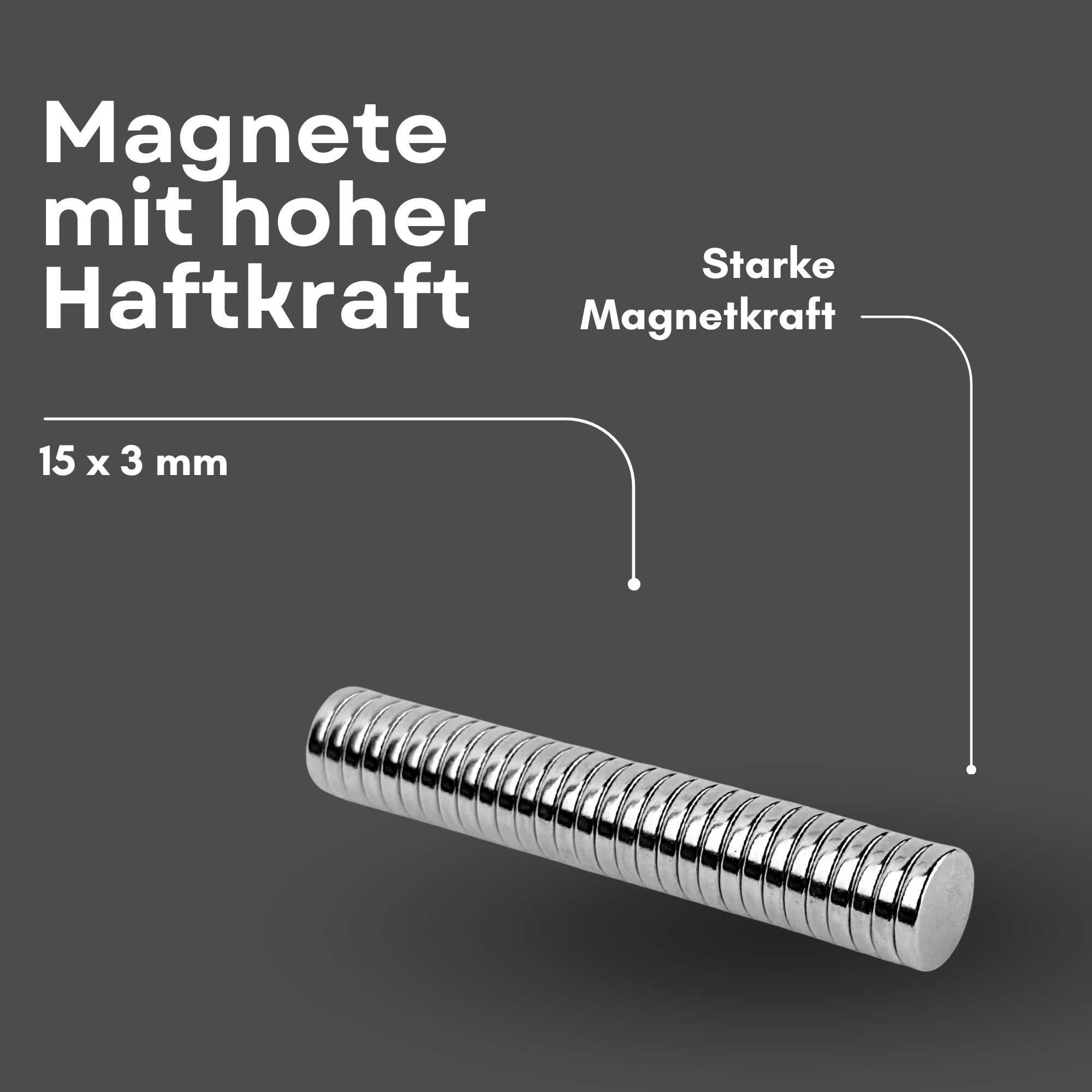 500 Stück Neodym Magnet Ø 15mm x 3mm - Starker Scheibenmagnet - N38 Supermagnet - Hoh