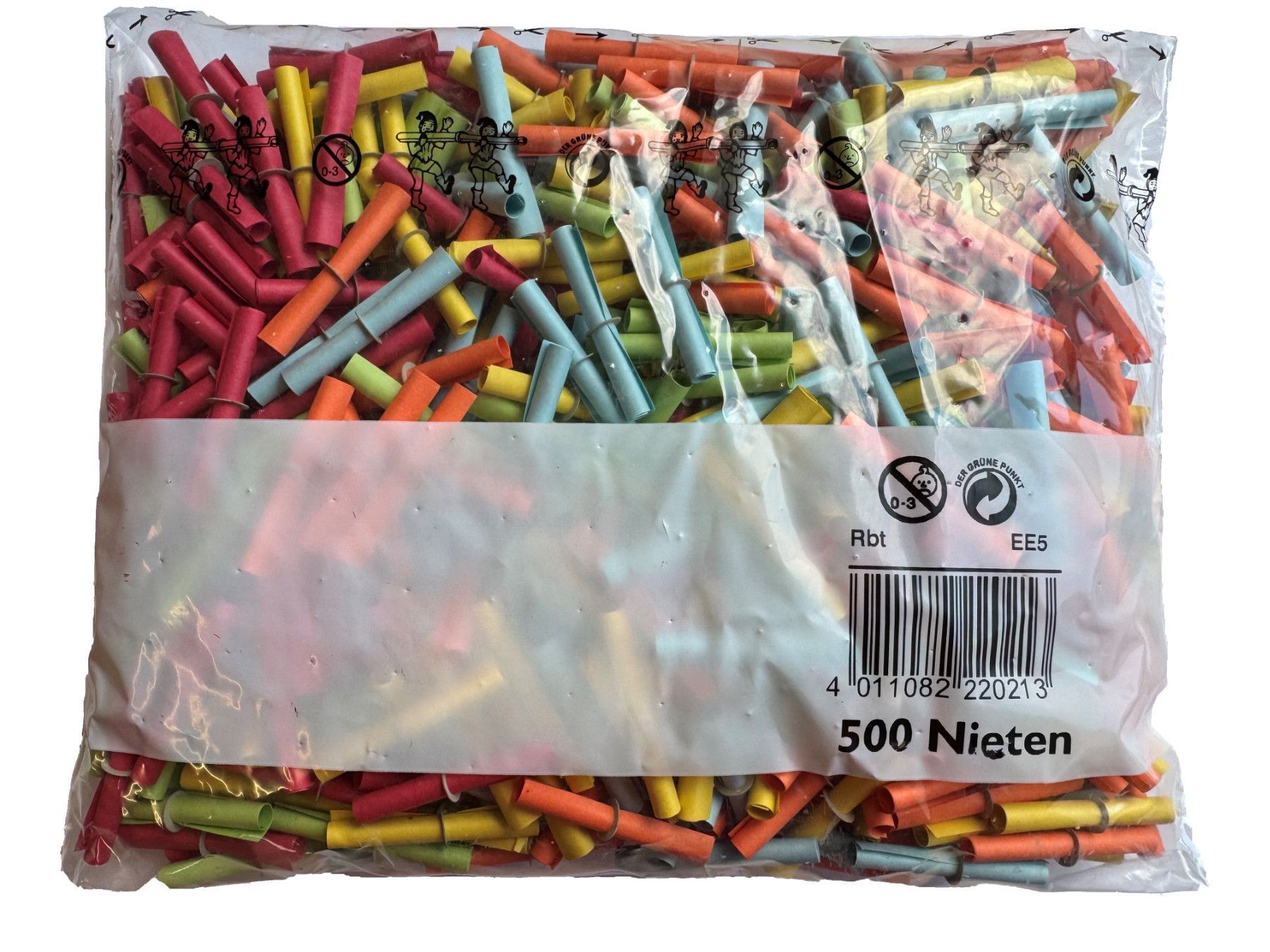 500 Tombolalose Röllchenlose Nieten, Buntgemischt