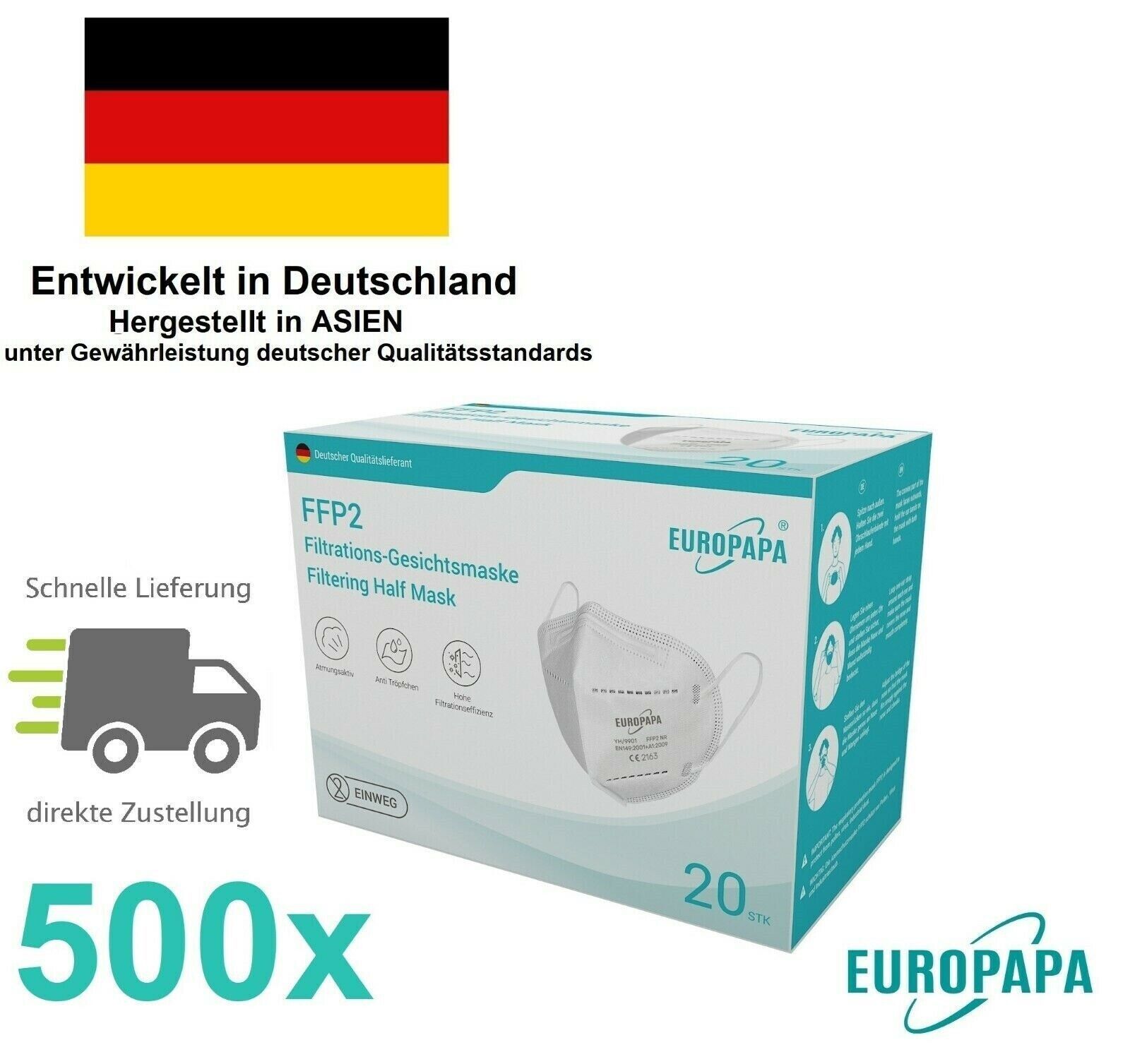 500 x Europapa FFP2 Atemschutzmaske CE geprüft CE 2163 Maske FFP 2 Mundschutz