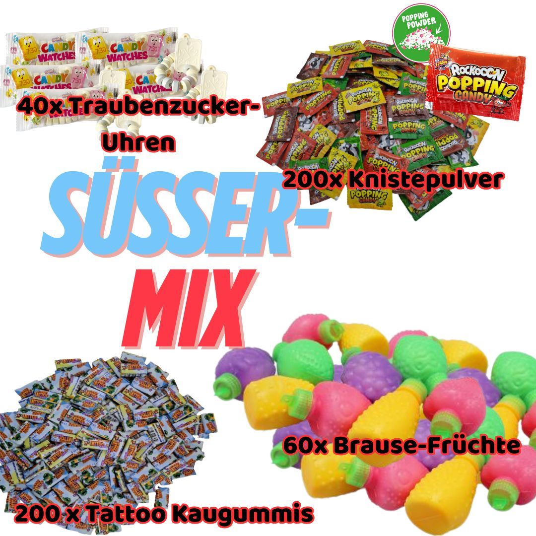 200 Tattoo Kaugummis 200 Knisterpulver 60 Brause Früchte 40 Traubenzucker Uhren