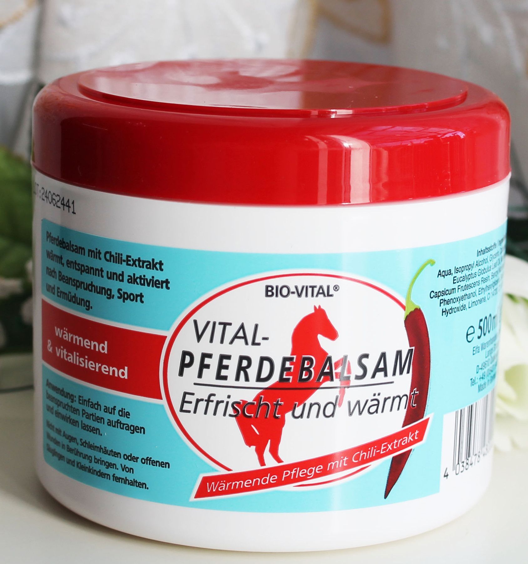 500ml Bio-Vital HOT Pferdebalsam Pferdesalbe Sport Gel erfrischt wärmt Chili