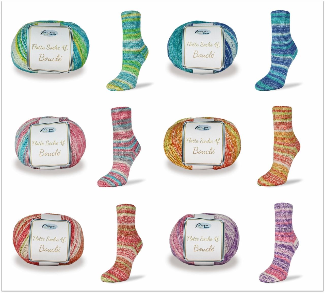 50g Flotte Socke Bouclé 4 fach Strumpfwolle Sockengarn Stricken GP 59,00€/1kg