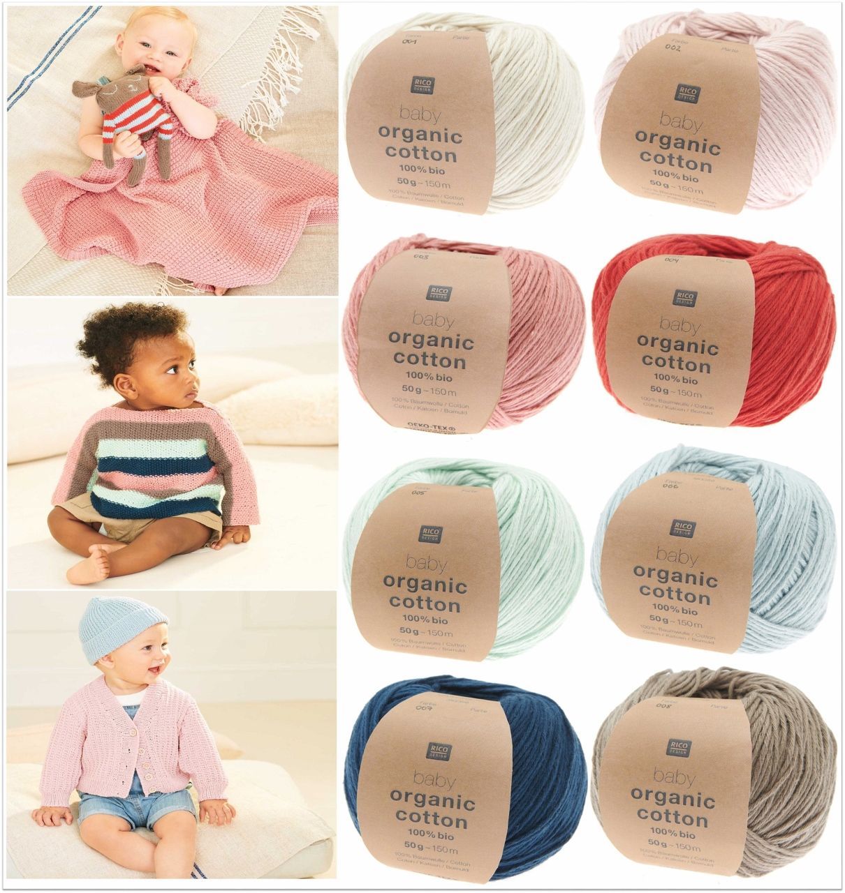 Rico Design 50g Rico Design Baby Organic Cotton Wolle Garn zum Stricken Häkeln GP 99,80€/1kg