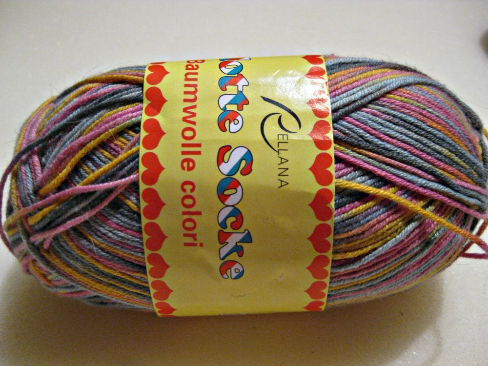 50g Sockenwolle Baumwolle von Rellana Nr 711 grau rosa gelb