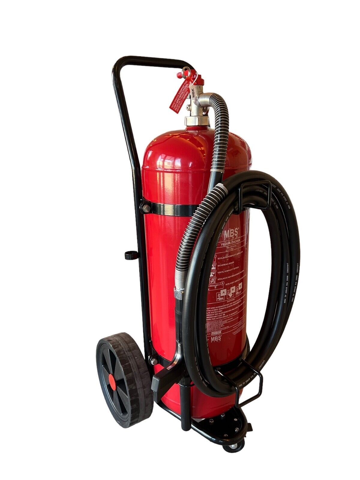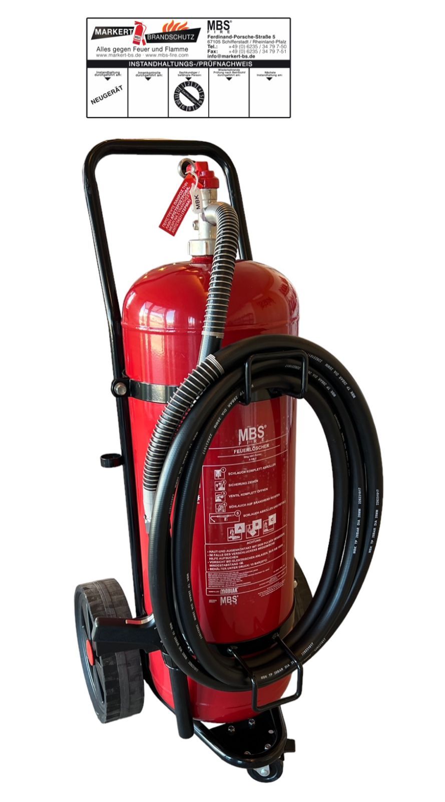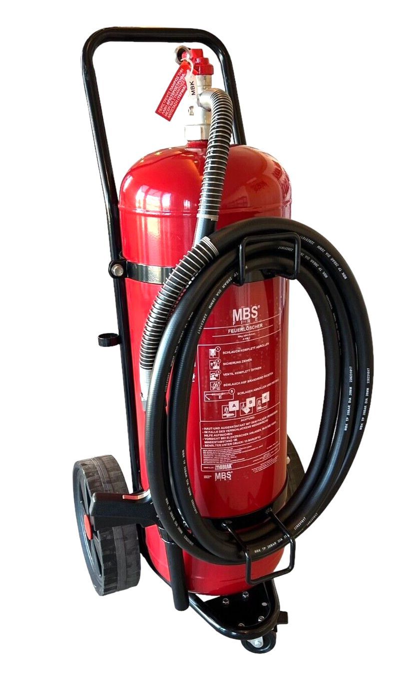 50kg Pulver Dauerdruck Feuerlöscher fahrbar DIN EN 1866 - Löschwagen 5m Schlauch