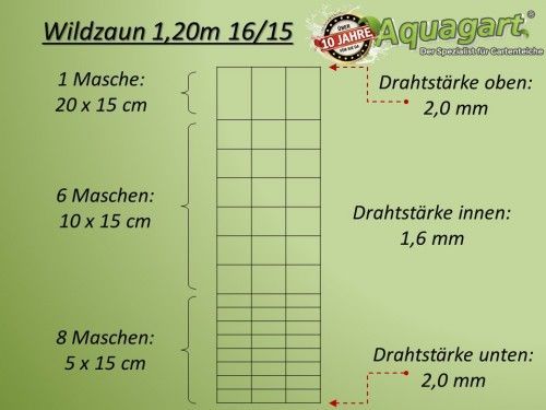 50m Wildzaun Forstzaun Drahtzaun Knotengeflecht 120/16/15+ Pfosten + Spanndraht