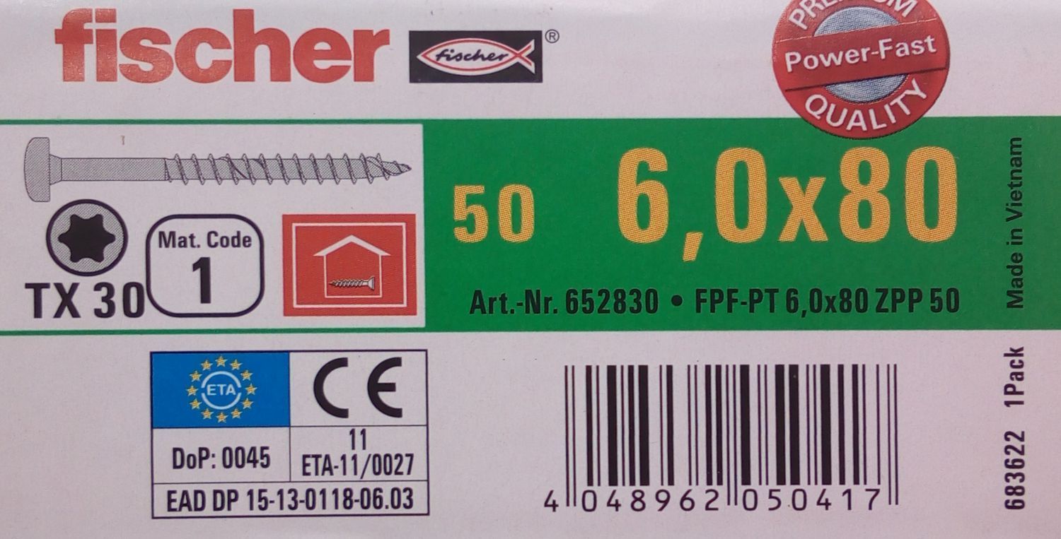 50x fischer Spanplattenschrauben 6,0x80 TX30 Holzschrauben verzinkt Teilgewinde