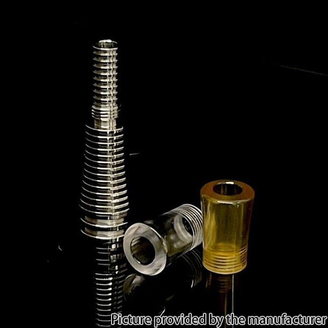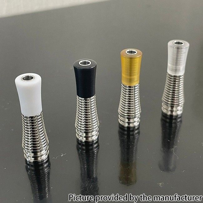 415 Langes 510 Drip Tip Set mit Edelstahl-Basis + 6 Mundstücken für RTA RDA Verdampfer Technische Daten: Maximaler Durchmesser: 9,4 mm Bohrungsdurchmesser: 3,5 mm Höhe (ohne Gummiring-Position): 28 mm Material Basis: 316 Edelstahl Eigenschaften: Inklusive 6 Mundstücken aus verschiedenen Materialien