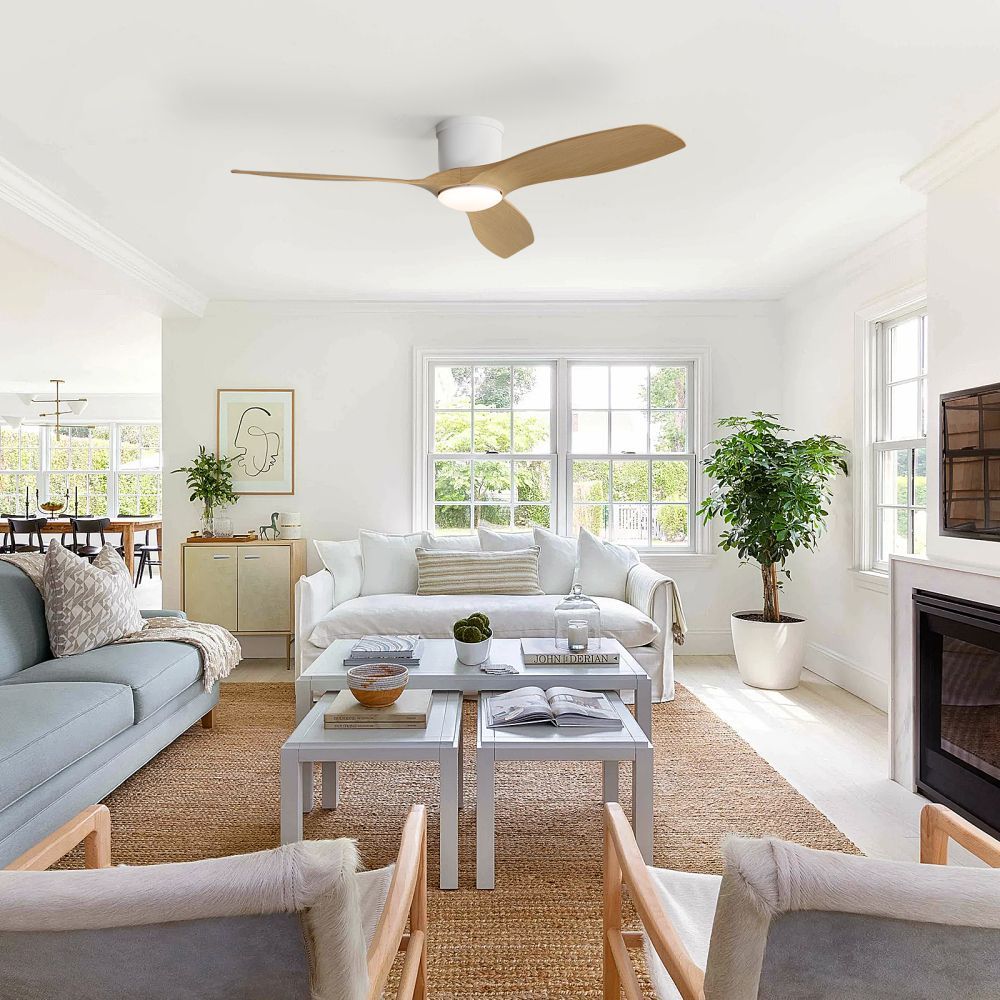 Der 52-Zoll-Deckenventilator in Mattblau mit 3 ABS-Flügeln verbindet modernes Design mit Funktionalität. Er verfügt über ein dimmbares 18W-LED-Licht mit 3 Farbtemperaturen und Fernbedienung. - 6 Geschwindigkeiten, Timer (1/4/8 Std.) und Vor-/Rücklauf - Leiser, effizienter DC-Motor für Sommer und Winter - Lichtfarben: Warmweiß 3000K, Neutralweiß 4000K, Kaltweiß 6000K - Maße: 132 x 132 x 22,86 cm, Gewicht: 5,3 kg