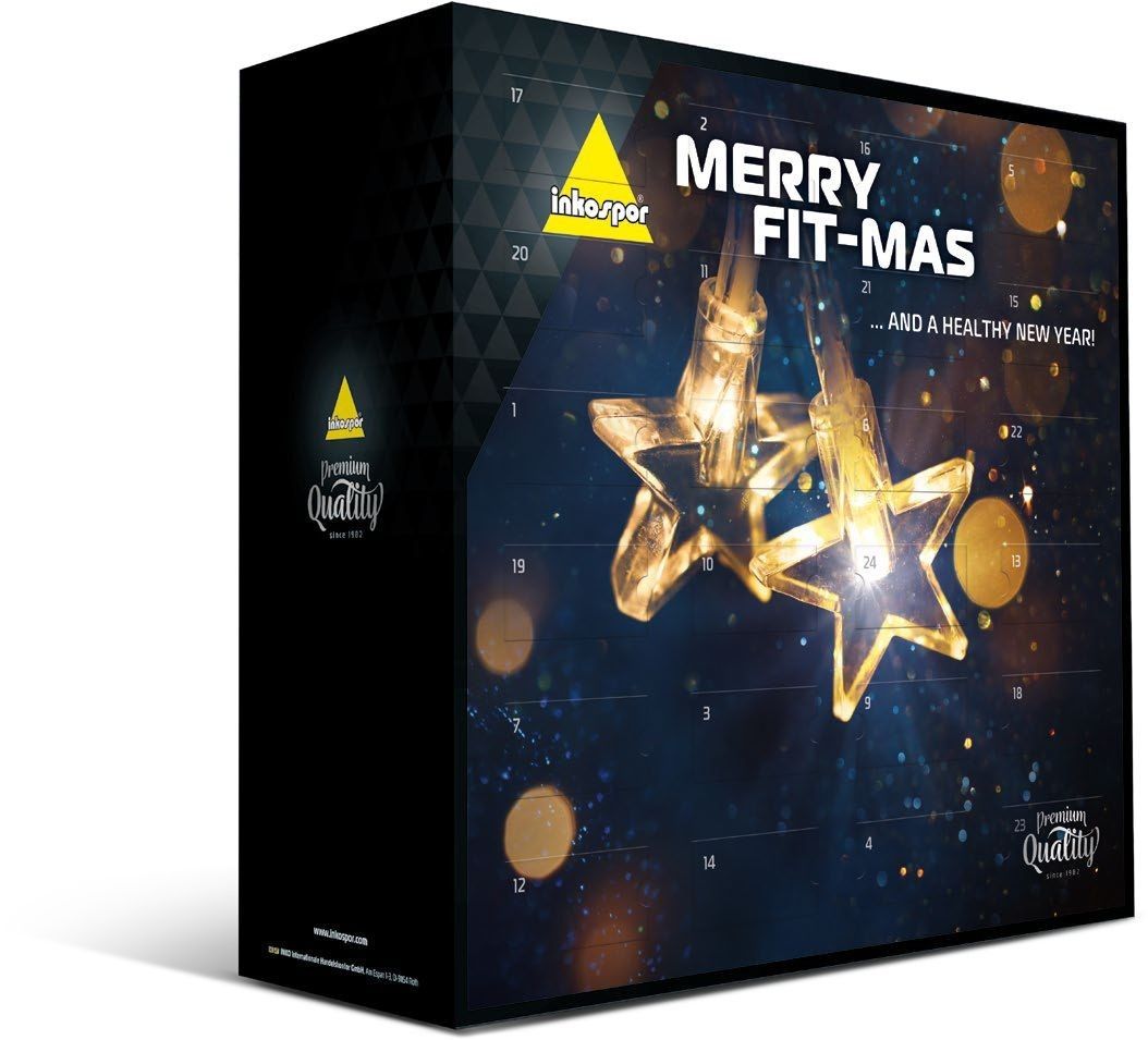 Mit unserer Riegelkalender-Aktion können sie sich schon jetzt weihnachtlich stimmen und ihnen bei der Suche nach den passenden Geschenken für ihre Lieben auf die Sprünge helfen. Riegel Adventkalender mit 24 Riegel, gemischte Sorten. INKO Merry Fit-Mas Riegelaufteilung: 2x 30g Müsli Apfel Zimt 2x 35g