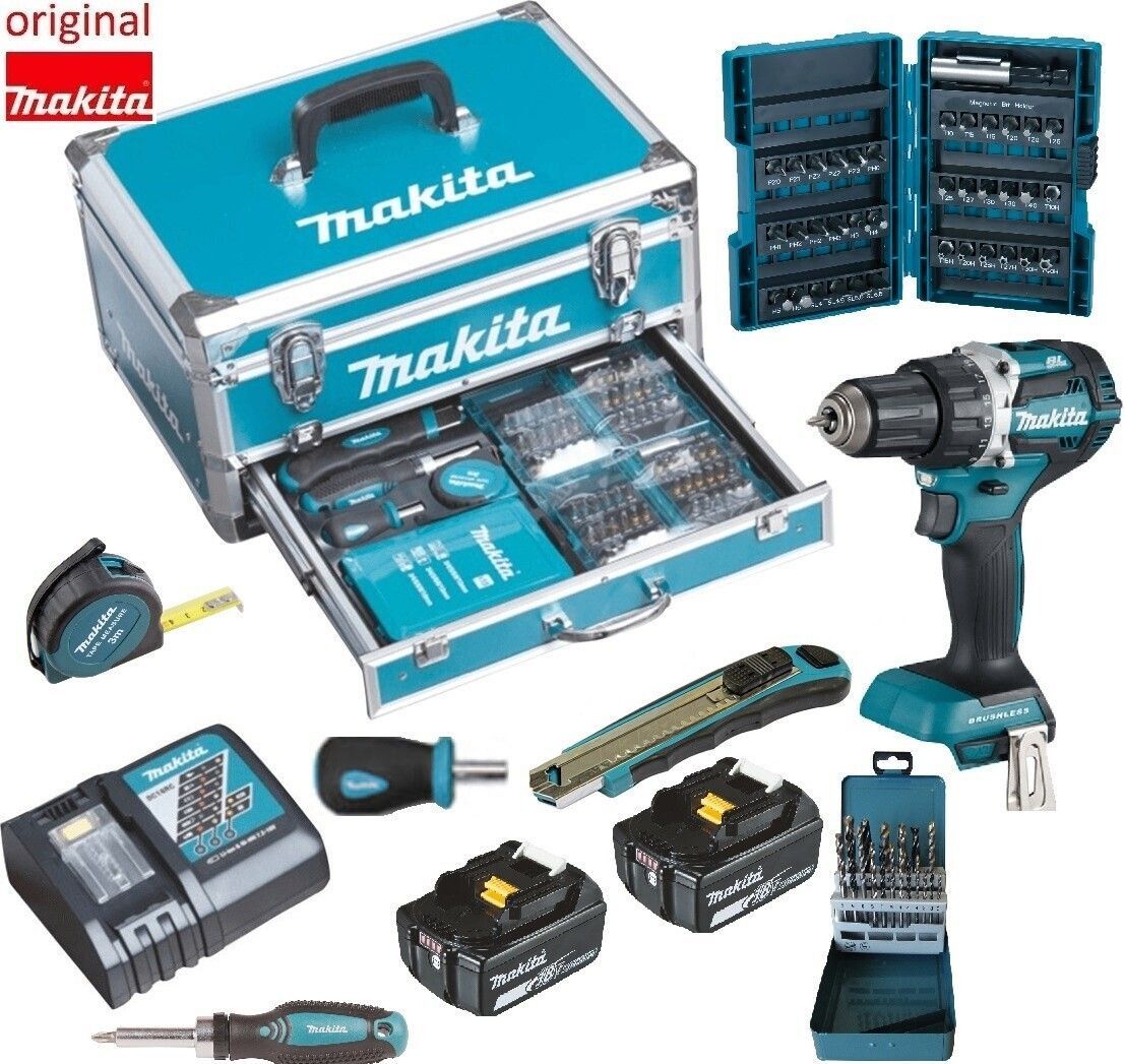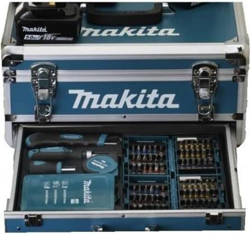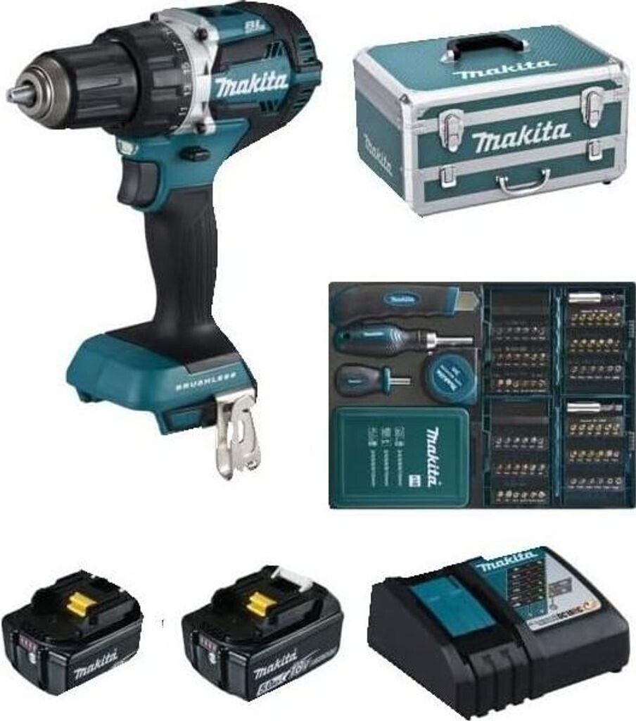 Makita 54NM Bohrschrauber mit 2 x 5 Ah Akkus, Ladegerät und 96 Zubehörteilen - Makita DDF484