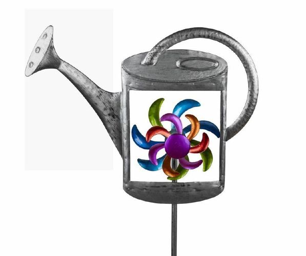 formano 560438 Stecker Gießkanne mit Windrad 24x116cm aus Metall gefertigt Multifarben