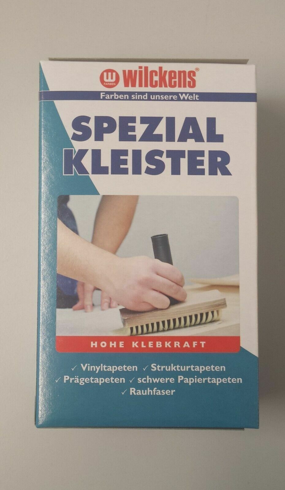 Spezialkleister Wilckens Tapetenkleister spezial ist ein kaltwasserlösliches Kartoffelstärkederivat. Hohe Klebkraft, für die sichere Verklebung von Vinyl-, Struktur-, Prägetapeten, schweren Papiertapeten und Rauhfaser. Beschreibung: Geeignet für eine Vielzahl von Tapeten, einschließlich schwere Tape