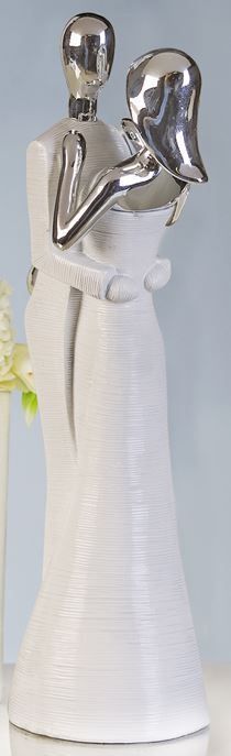 Gilde 59217 Gilde Figur "Liebespaar" aus Poly · weiß · feines Streifendesign (Gr. Klein)