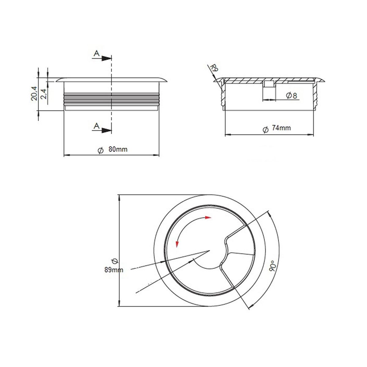 5er Pack Kabelkanal hellbraun ø 80mm Kabeldurchlass Kabelführung Kabelöffnung