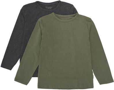 • Minymo Kinder Longsleeve Basic 34 Langarm Shirt (2-Pack) Anthacite Black