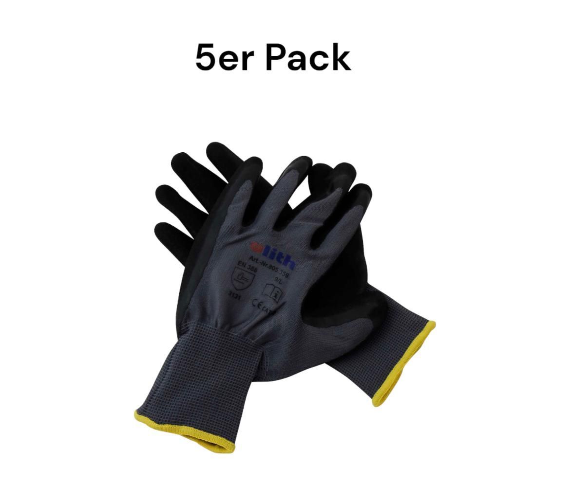 Ulith 5er Pack Ulith Arbeitshandschuhe grau Gr. 9/L Soft-Latex EN388