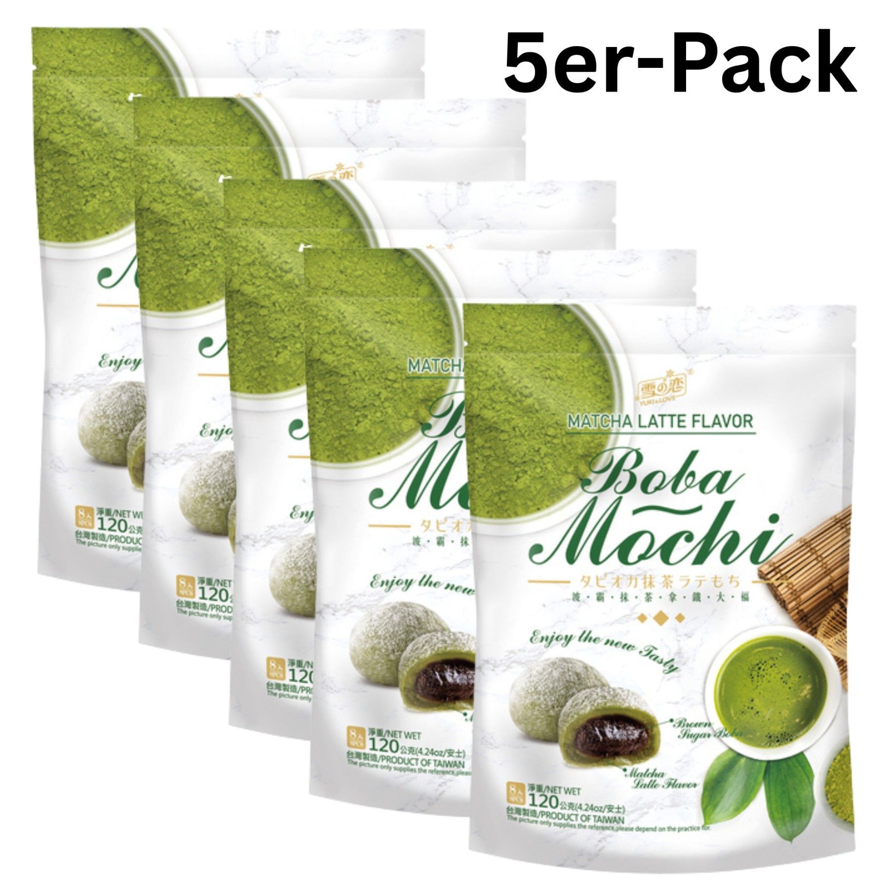 5er-Pack Yuki & Love Mochi Boba Matcha Latte 120g