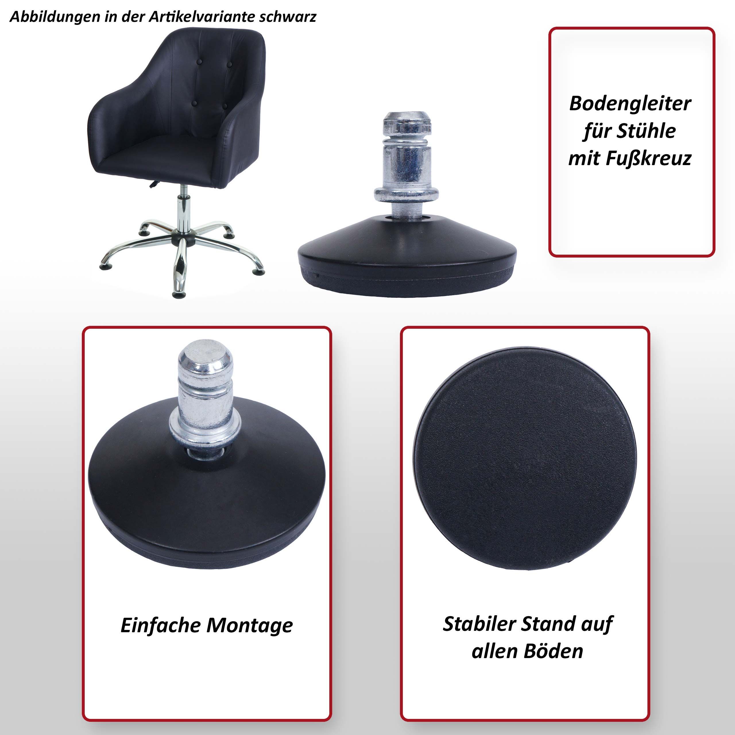 Mendler 5er-Set Bodengleiter HWC-K73 fester Stand für Bürostuhl/Esszimmerstuhl, Ø 11mm