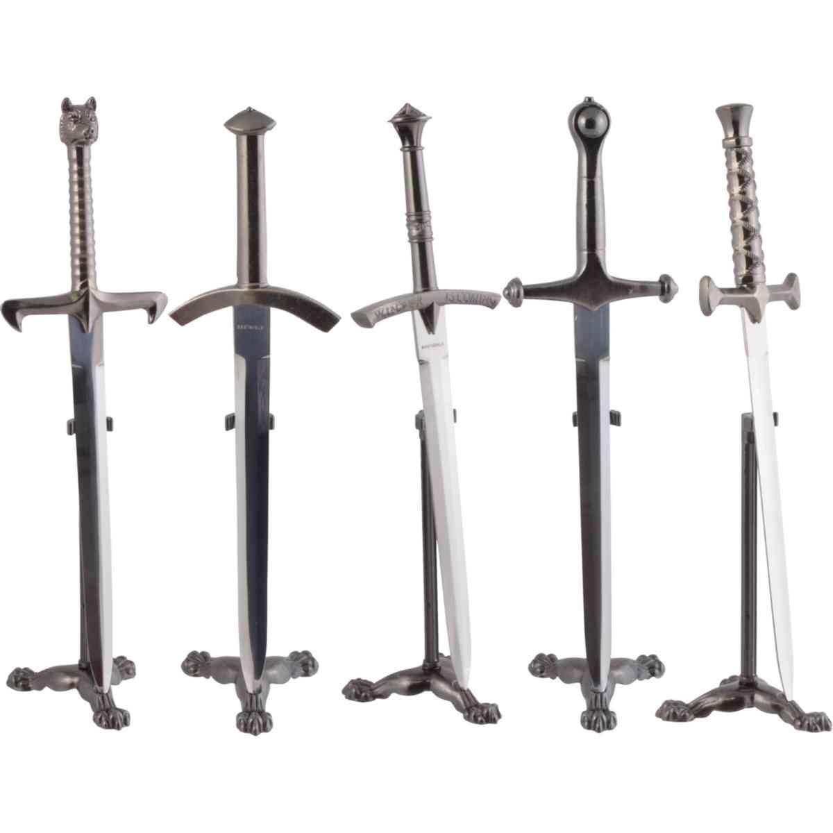 5er Set Brieföffner War of Thrones mit Ständern, Stahlklingen gebliestert