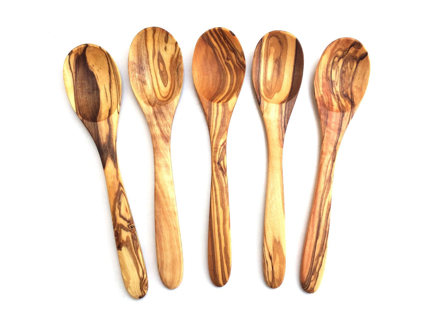 5er Set Esslöffel 20 cm Holzlöffel Leicht handgemacht aus Olivenholz