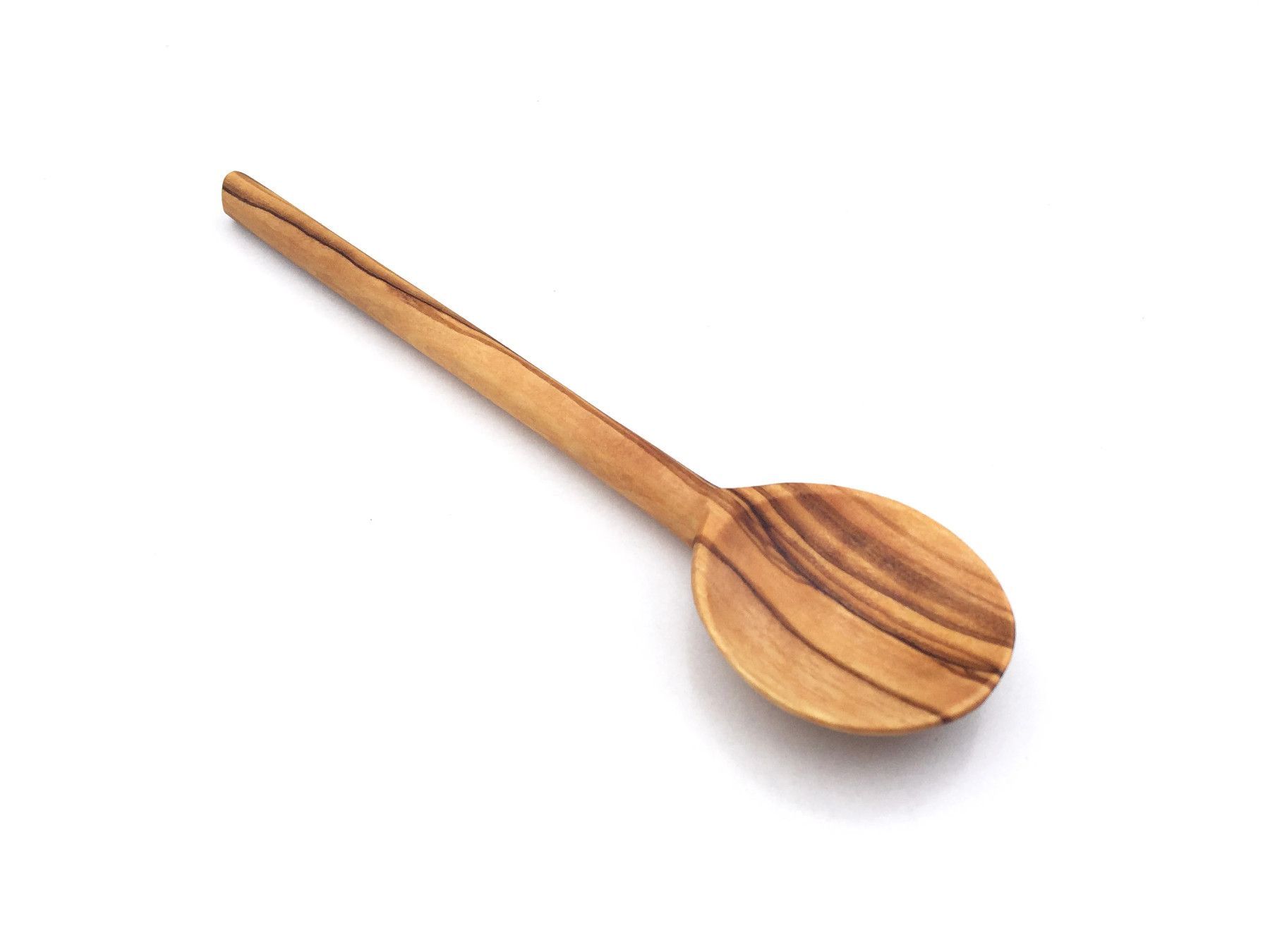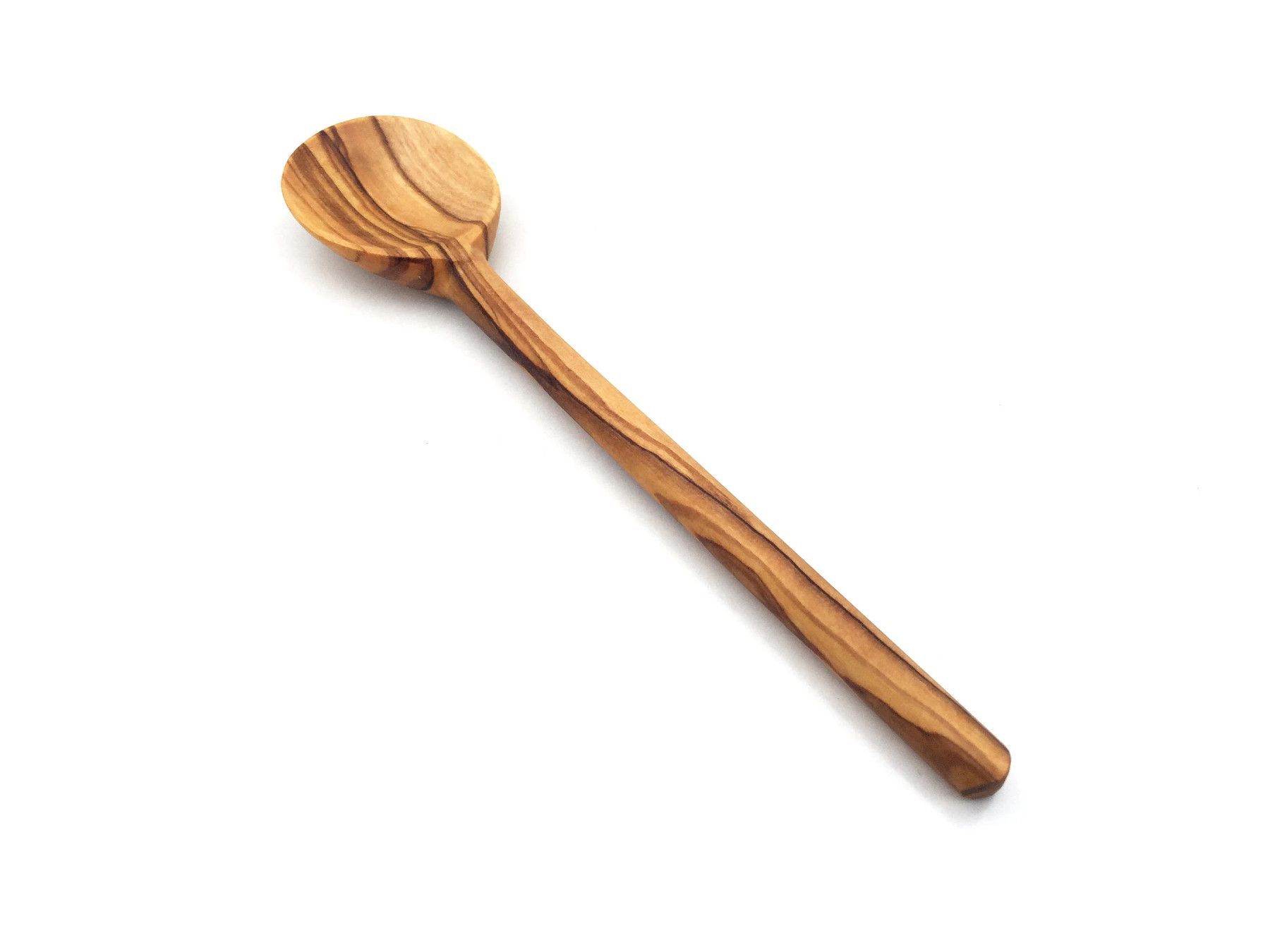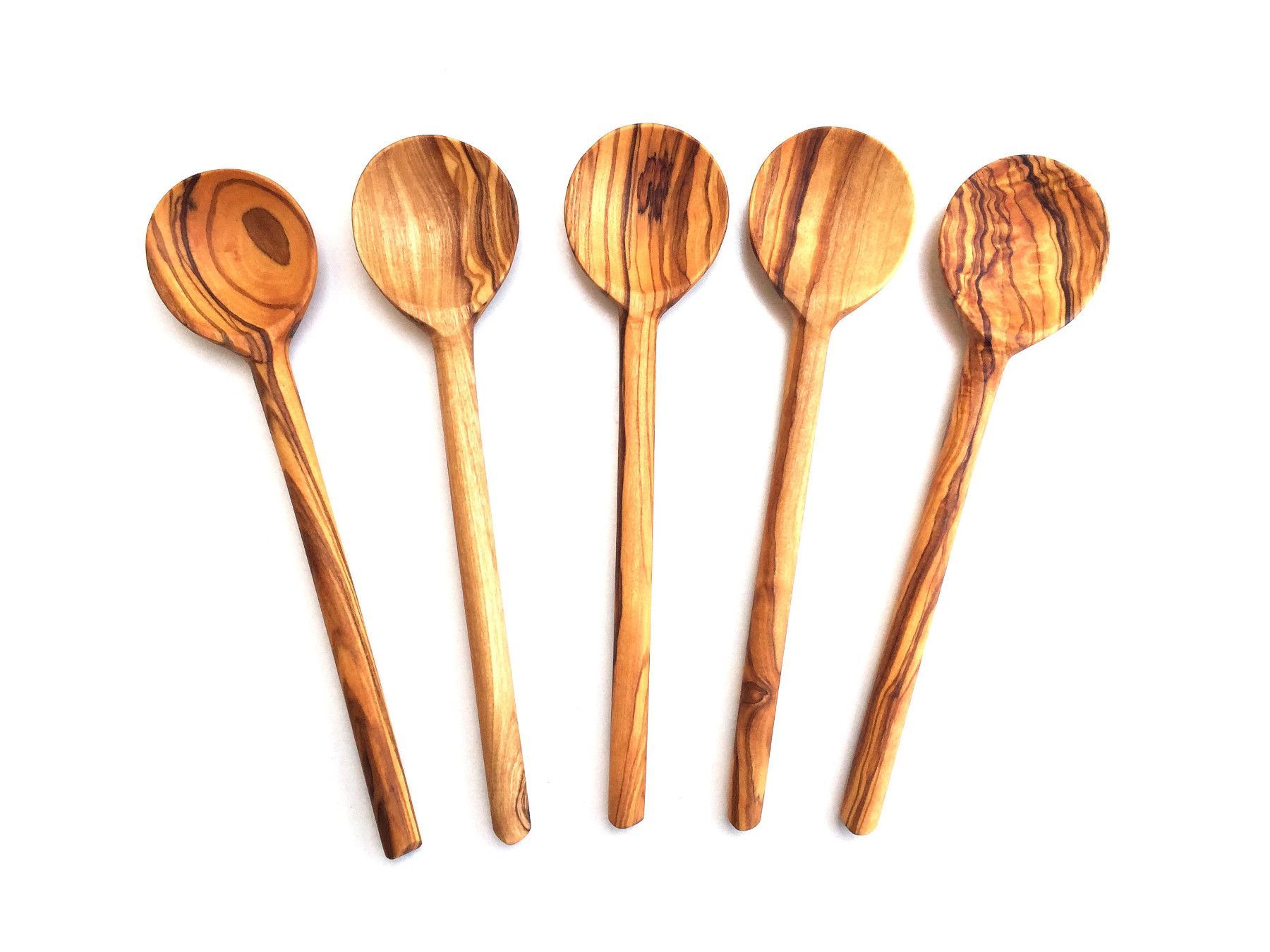5er Set Esslöffel runder Griff 18 cm, Leicht, Holzlöffel handgefertigt aus Olivenholz
